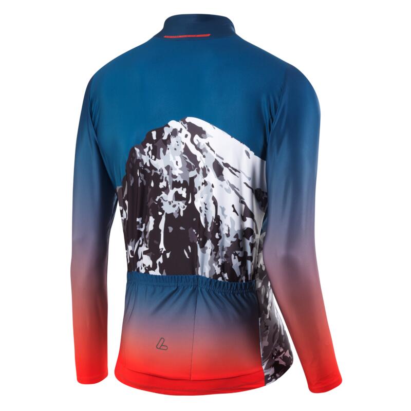 An insulated cycling jersey with a roughened interior for cold days with long sleeves from Löffler.