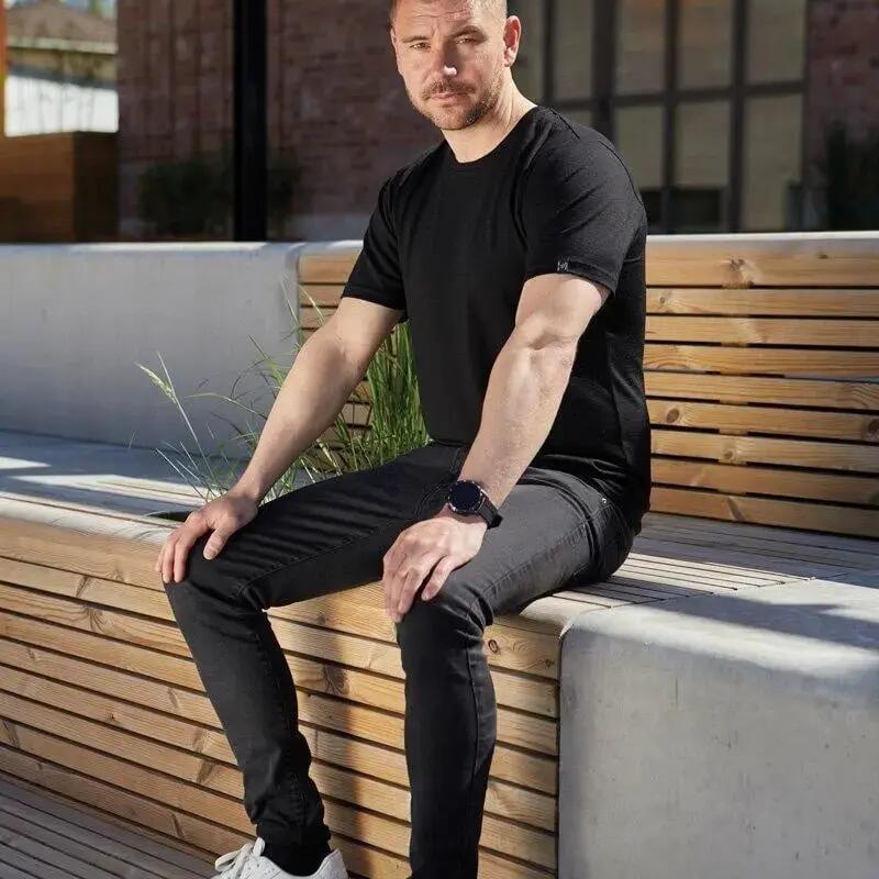 UW Ceasar T-shirt for men - 100% extra fine merino wool - Black
