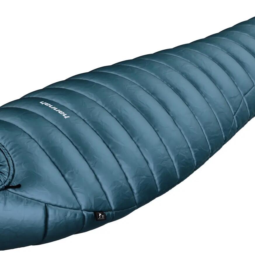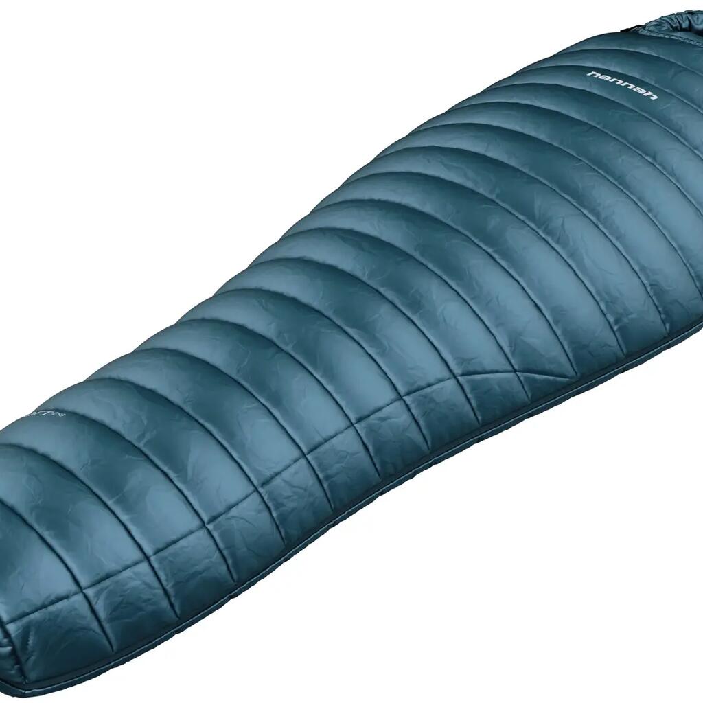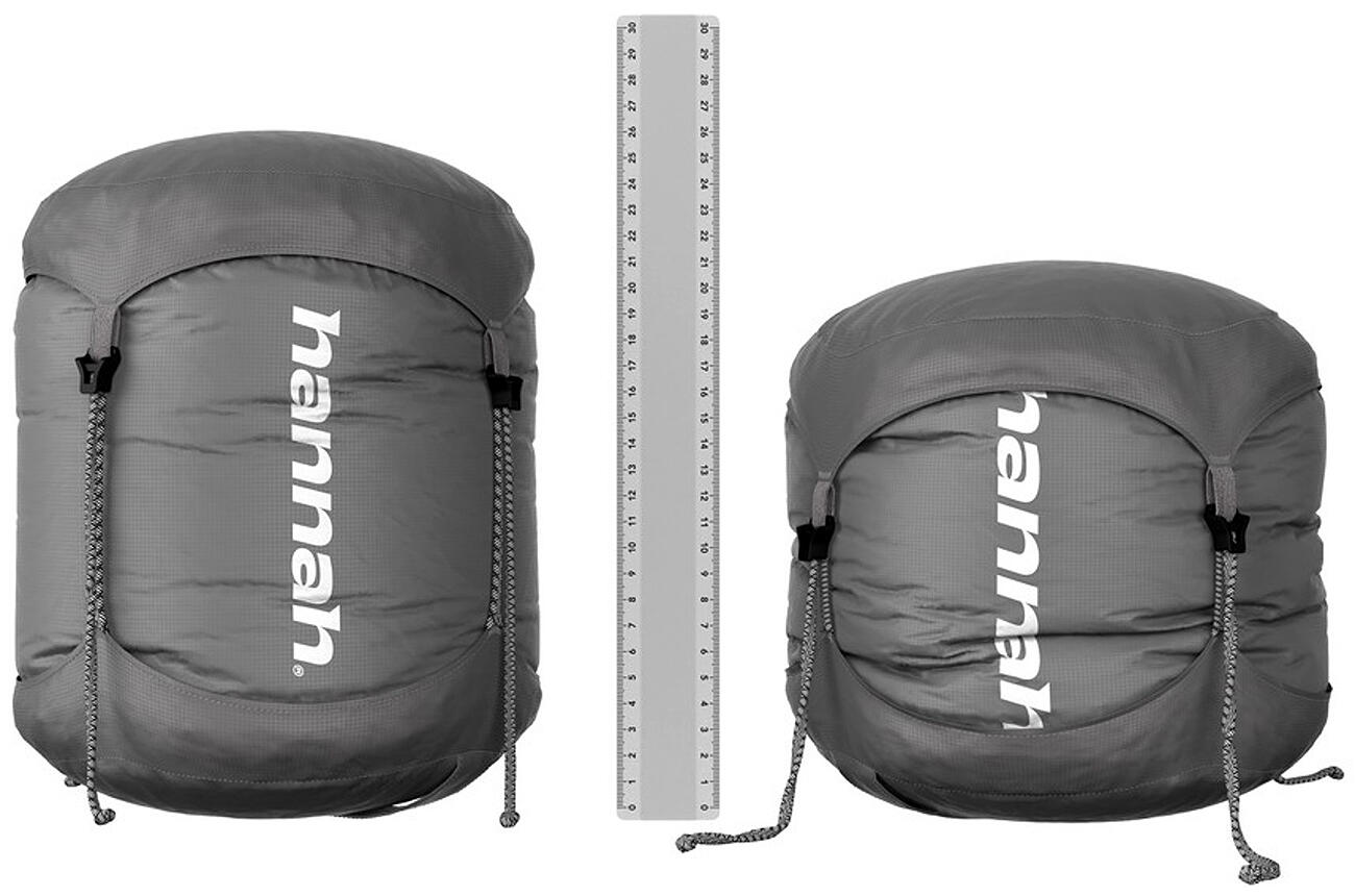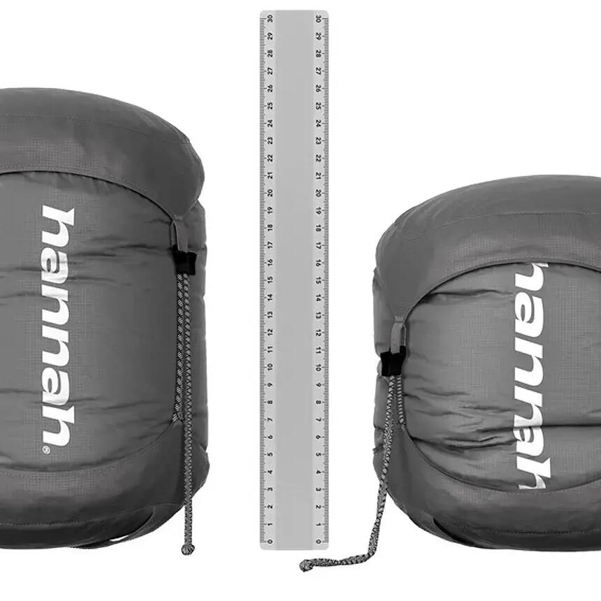 A lightweight down sleeping bag from Hannah, weighing approximately 650 grams, which you can take with you in your backpack with minimal volume.