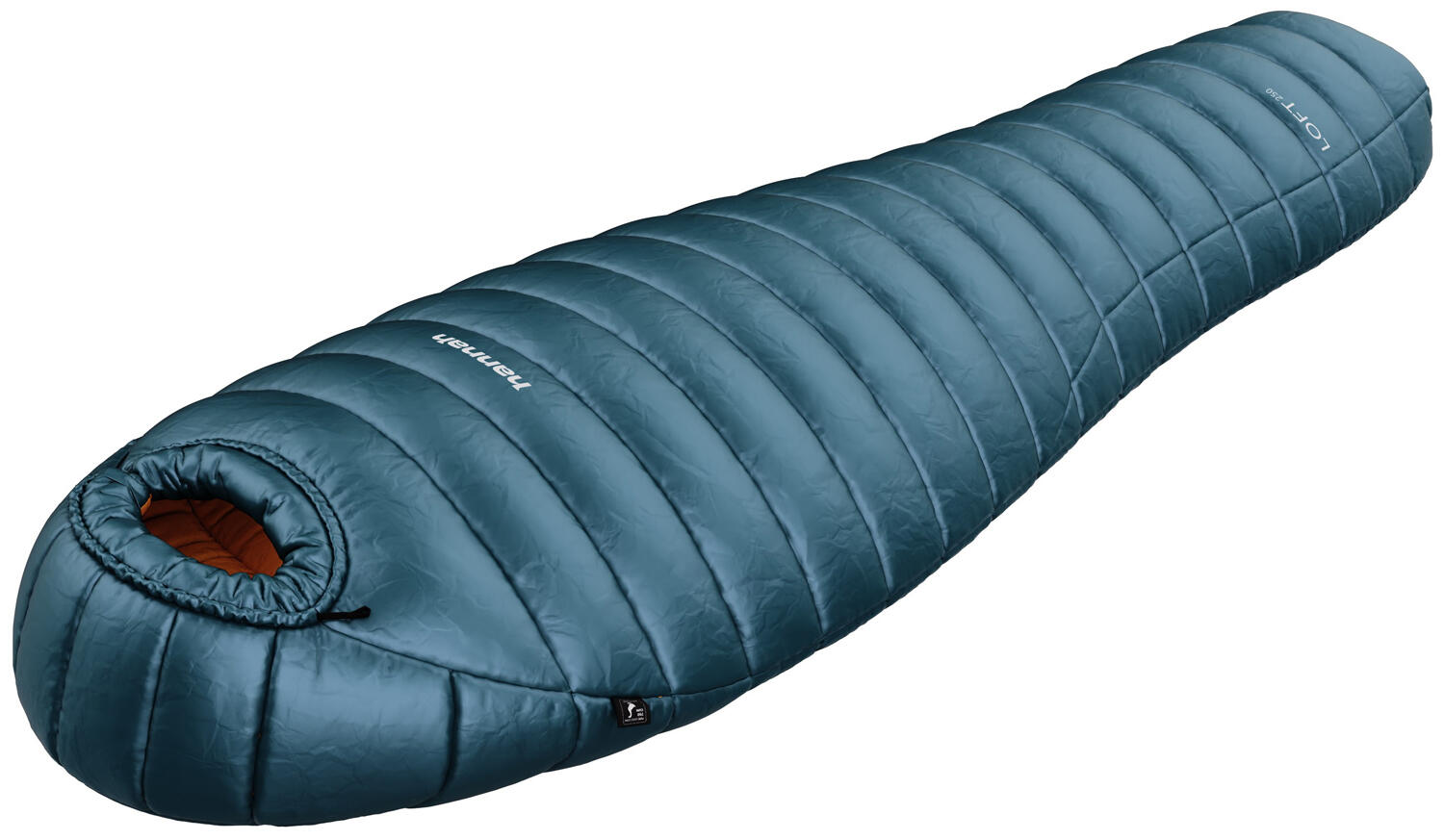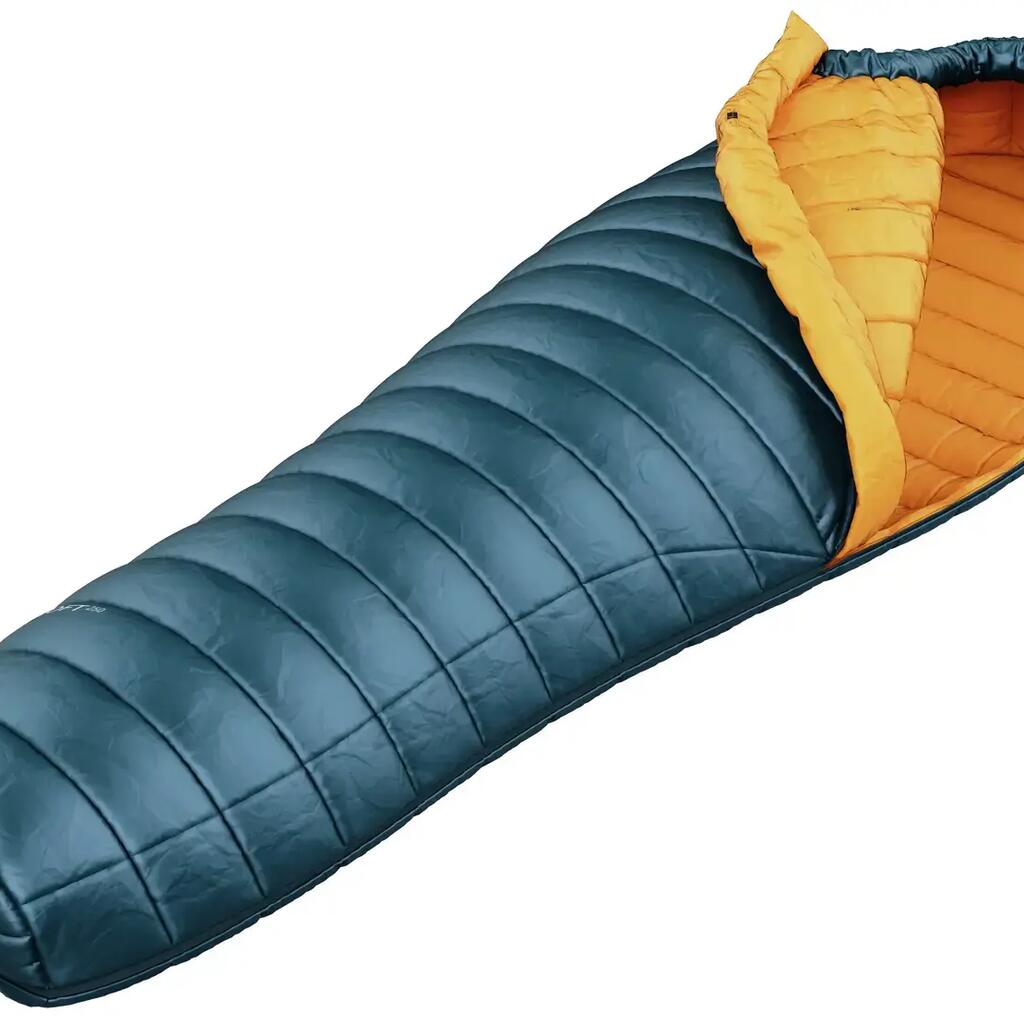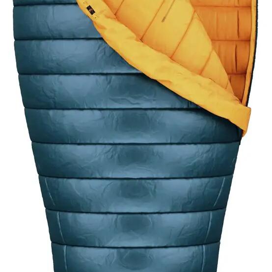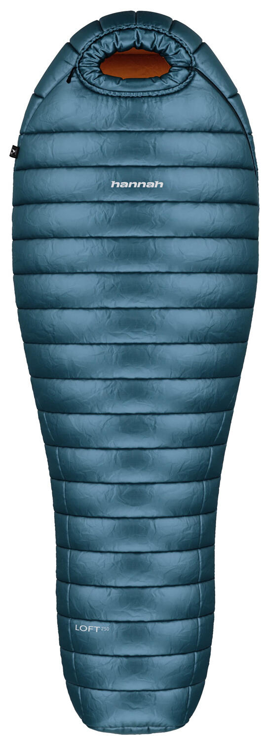 A lightweight down sleeping bag from Hannah, weighing approximately 650 grams, which you can take with you in your backpack with minimal volume.