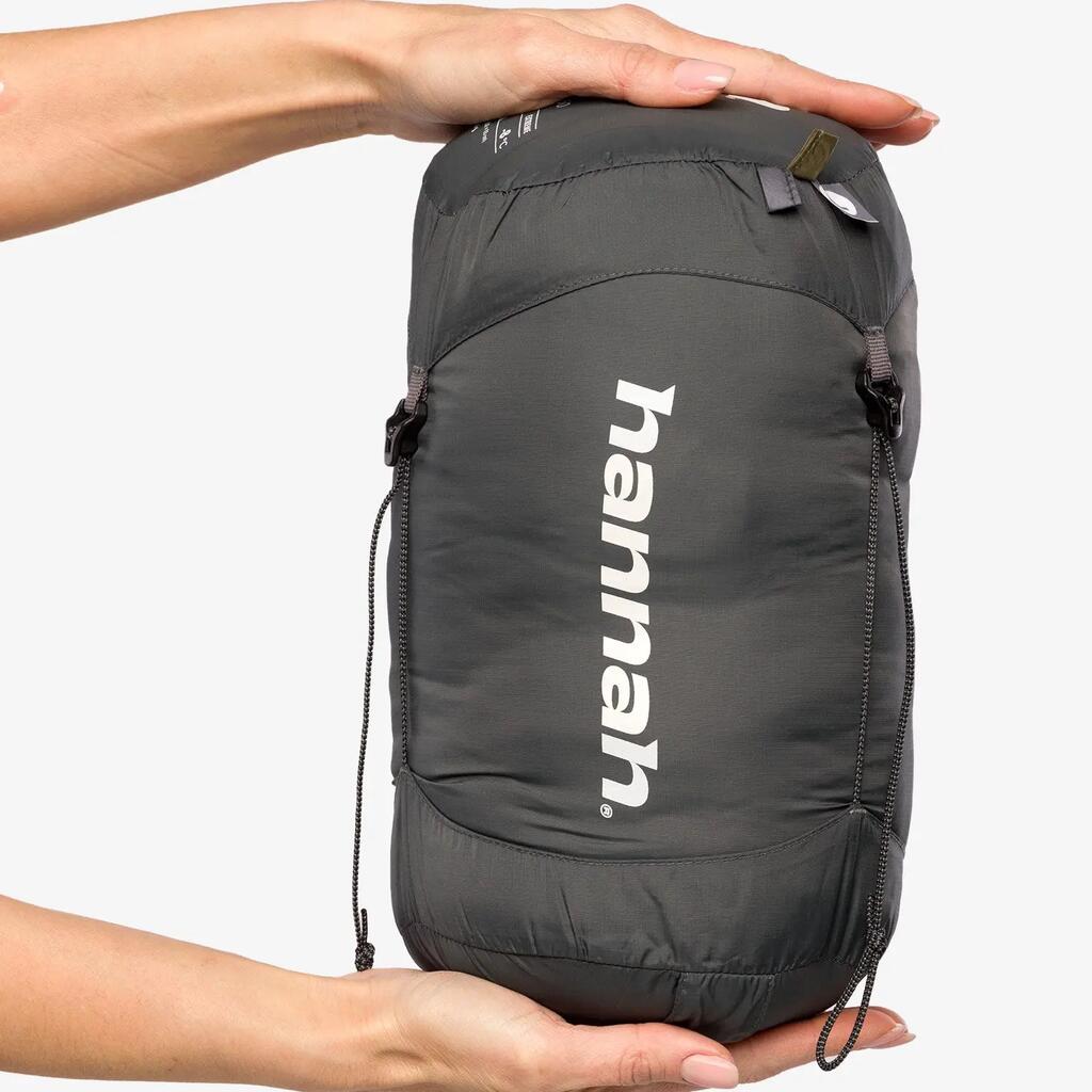 A lightweight down sleeping bag from Hannah, weighing approximately 630 grams, which you can take with you in your backpack with minimal volume.