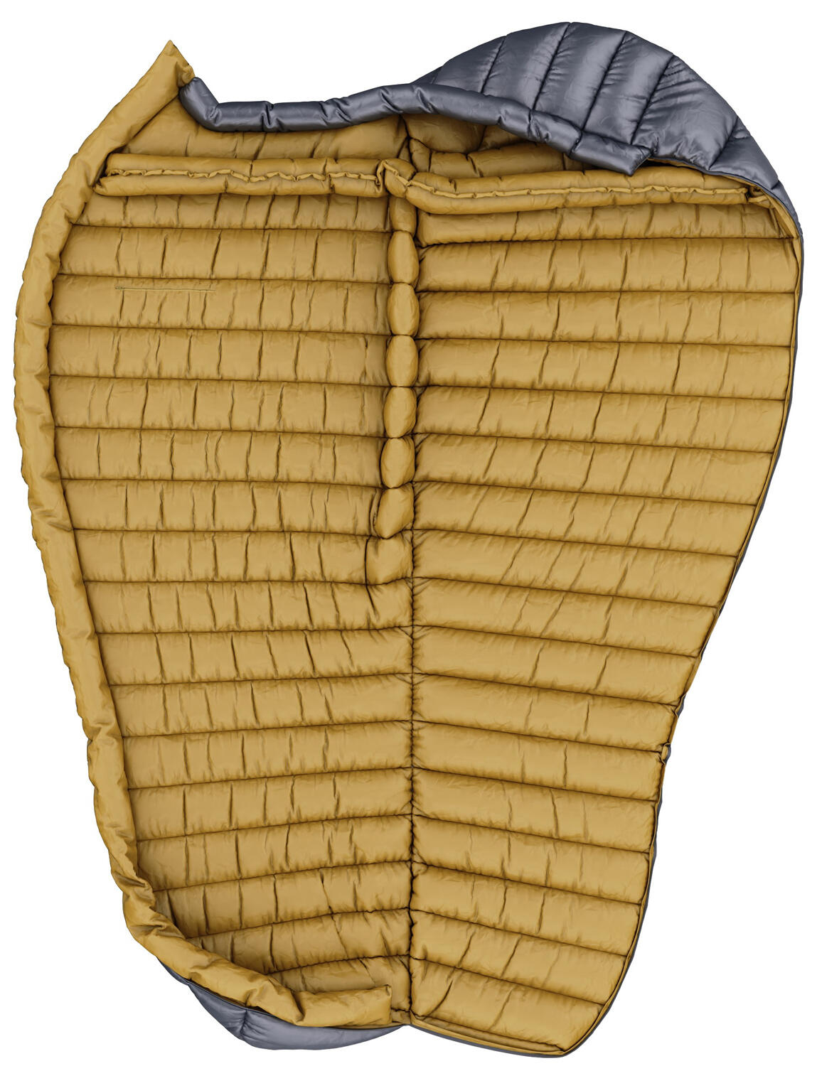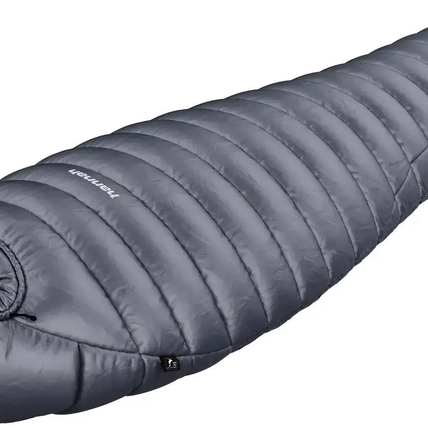A comfortable ultra-lightweight down sleeping bag from Hannah, weighing approximately 870 grams, which you can take with you in your backpack with minimal volume.