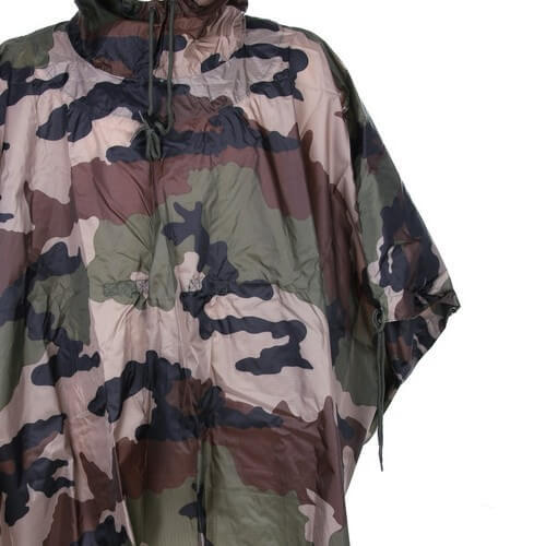 101 Inc Poncho Recon French Camo. Handy one-size-fits-all poncho that can be quickly thrown over you for protection from the rain.