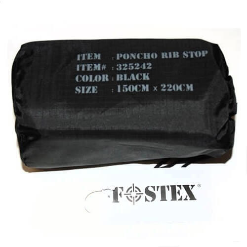 Fostex Poncho Ripstop Black. Handy one-size-fits-all poncho that can be quickly thrown over you for protection from the rain.