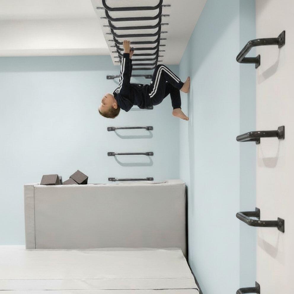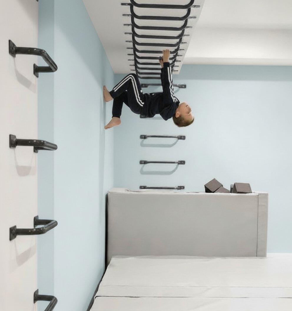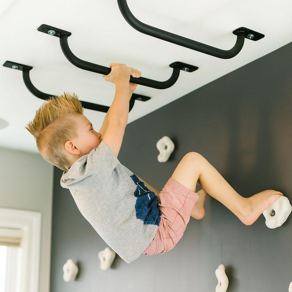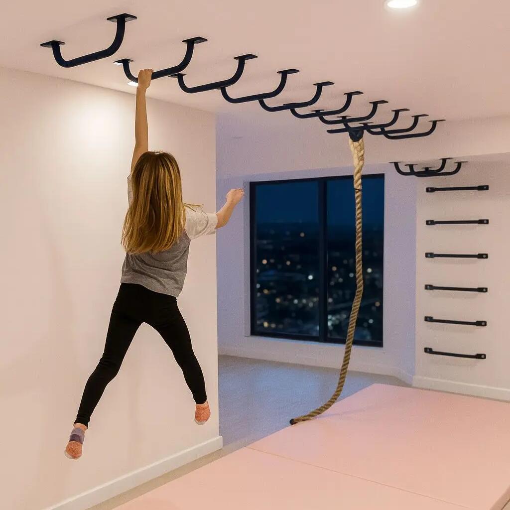 This black ceiling-mounted pull-up bar supports up to 120 kg, saves space, and delivers a powerful, safe upper-body workout at home.