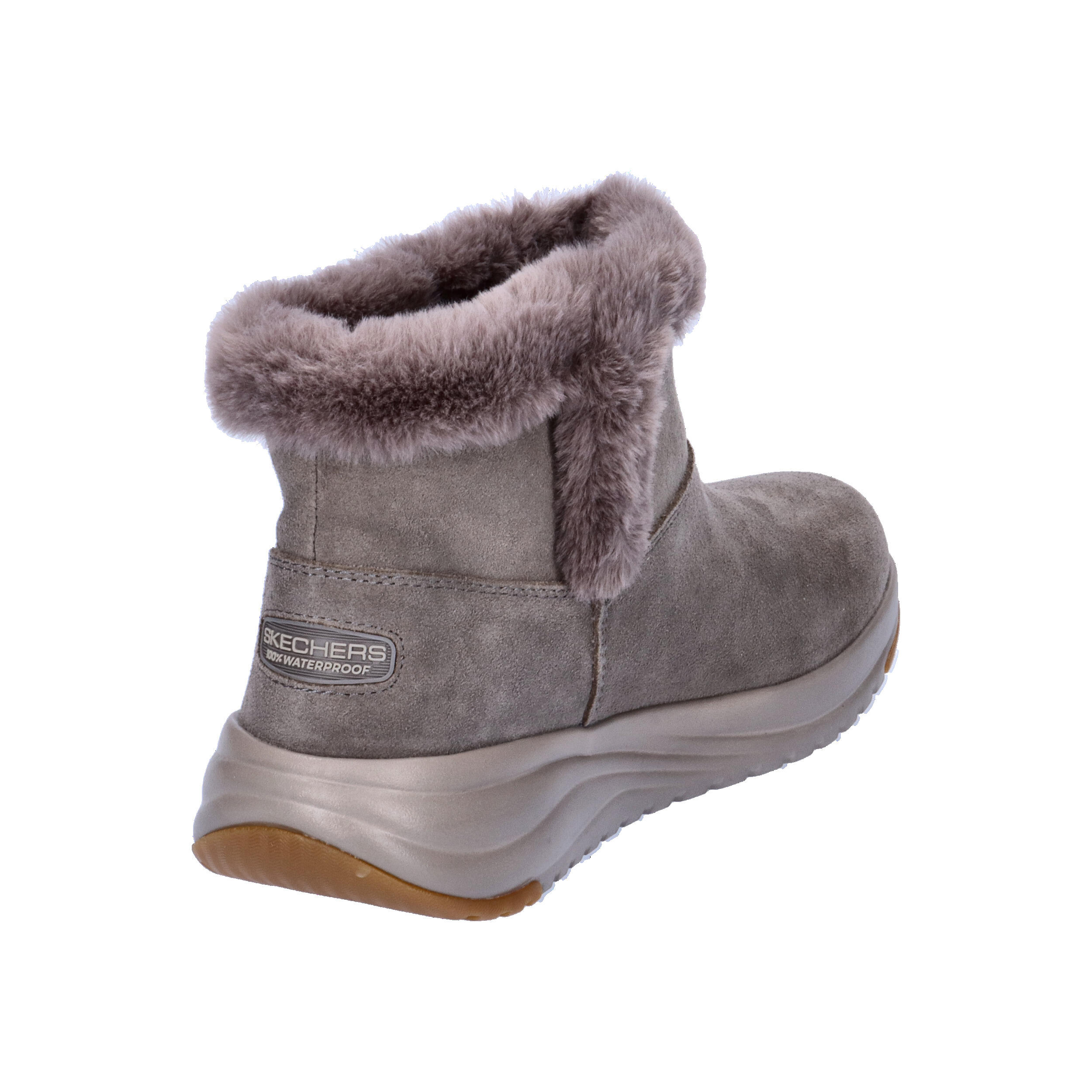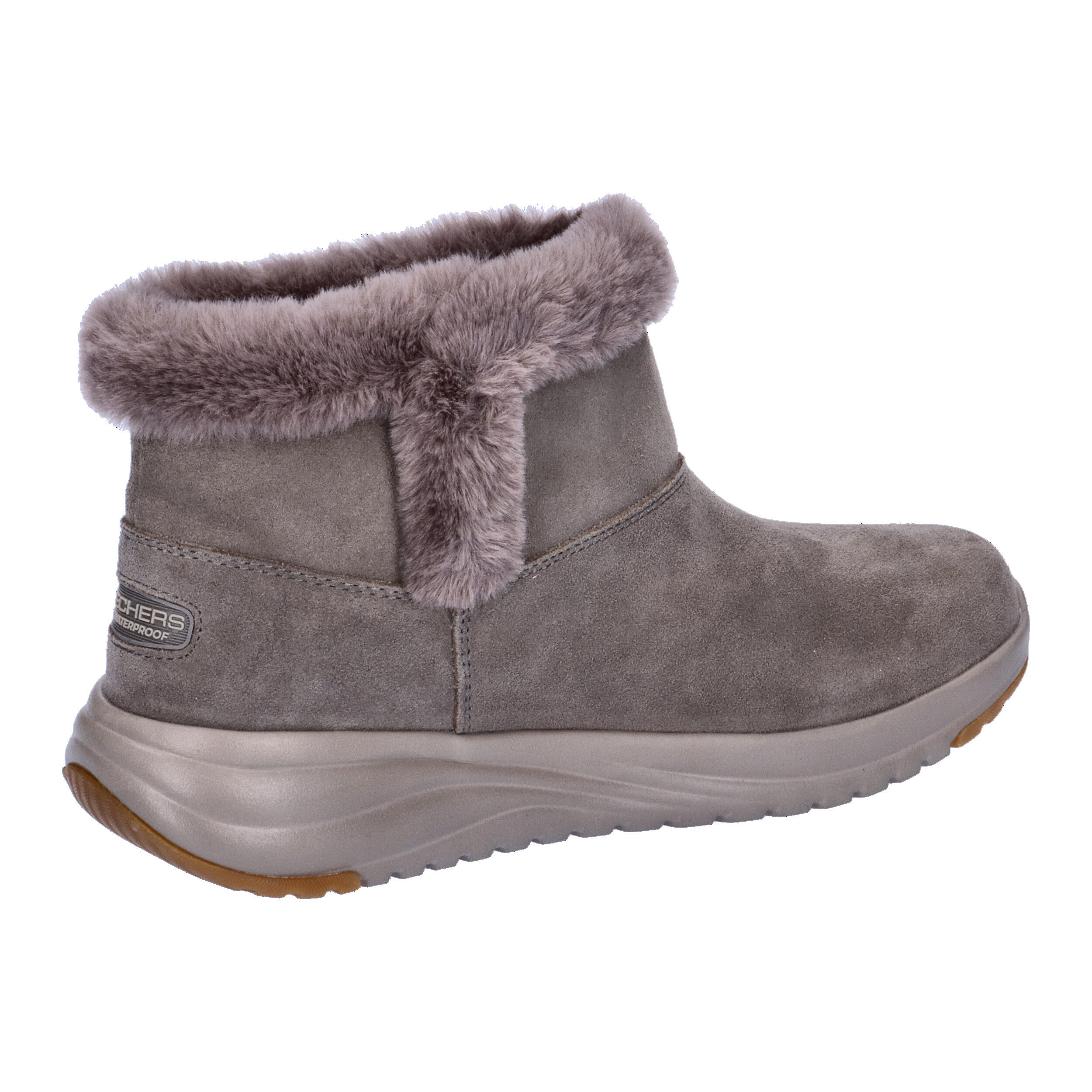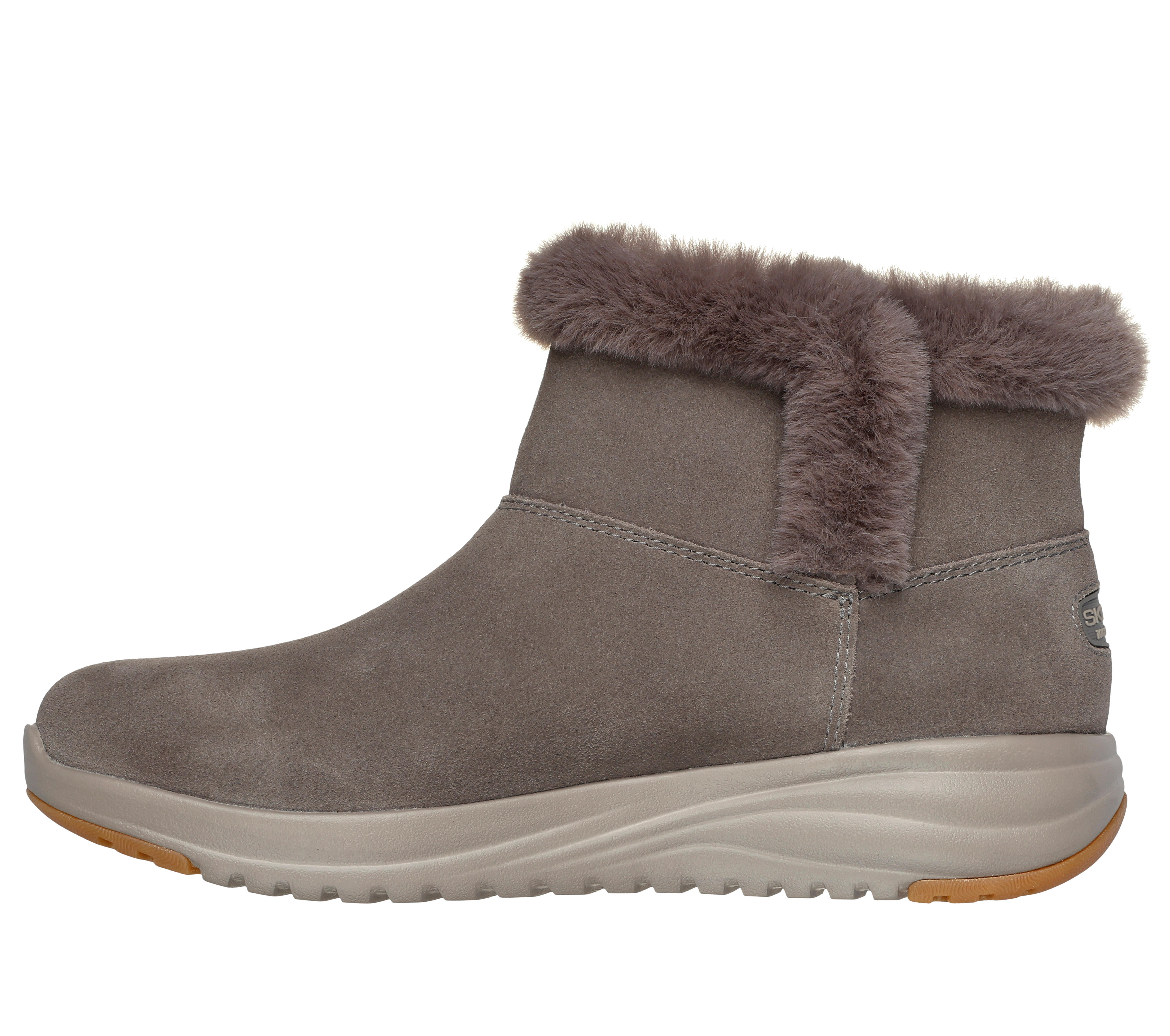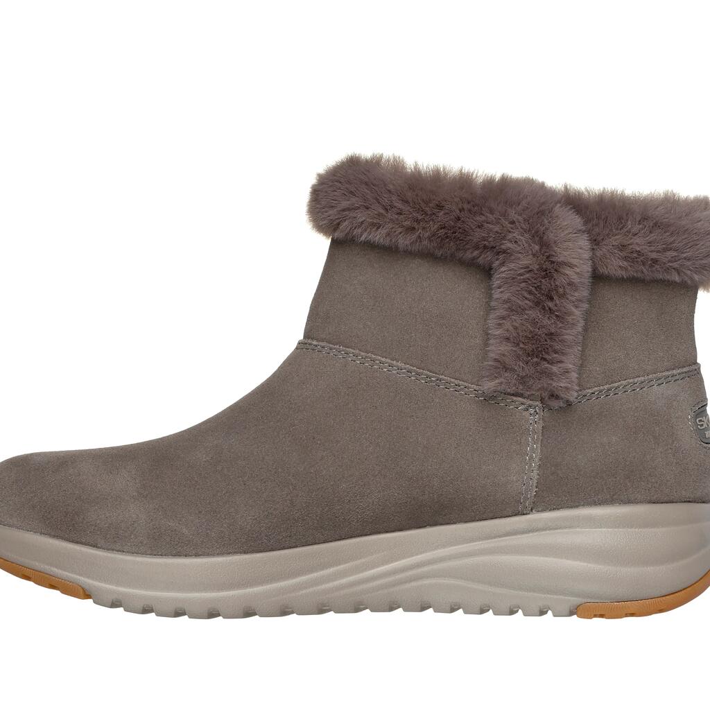 The Skechers On-the-GO Stellar - Cozy Step: With a waterproof suede upper, faux fur trim and lining, and a Skechers Air-Cooled Goga Mat insole.