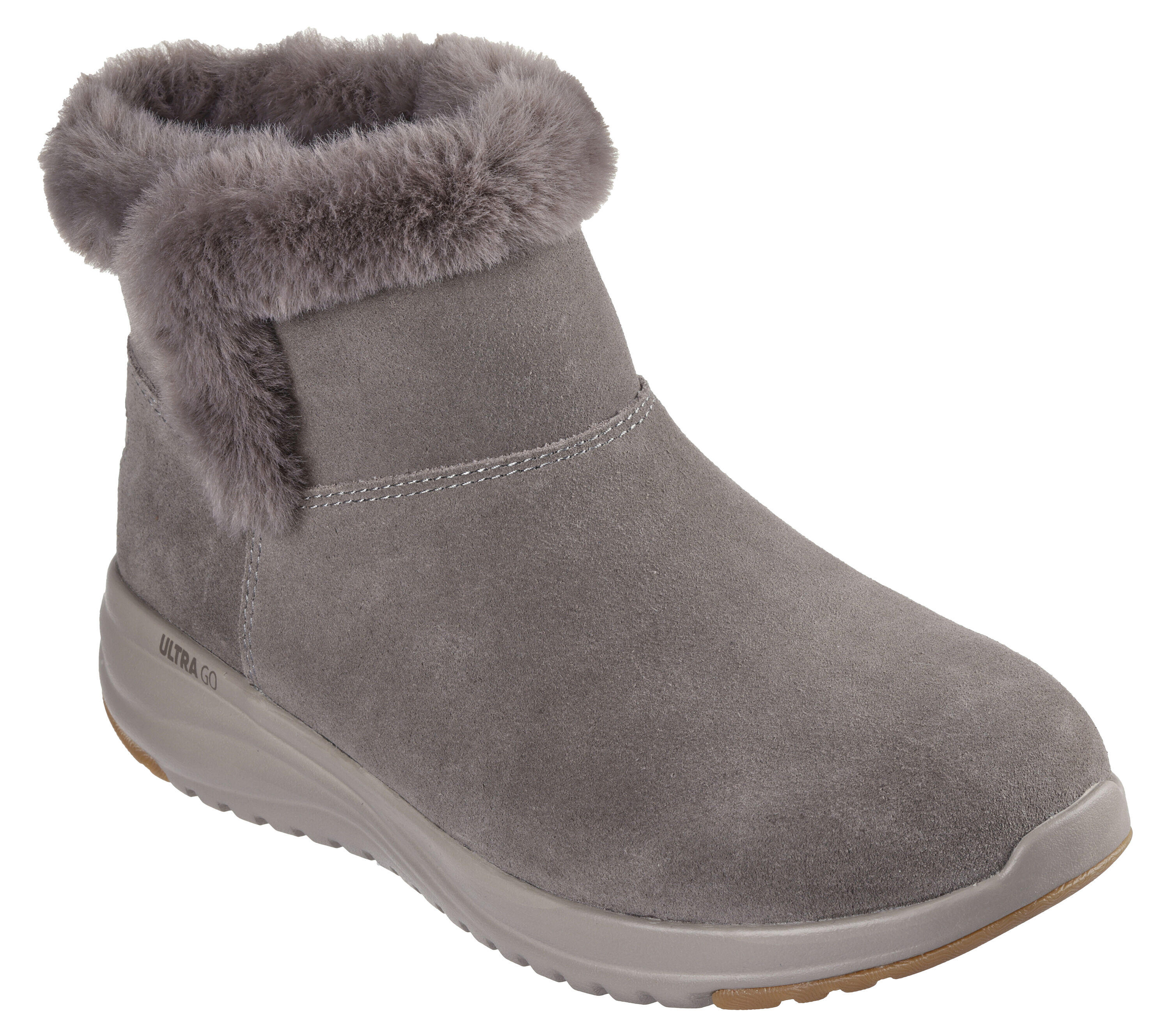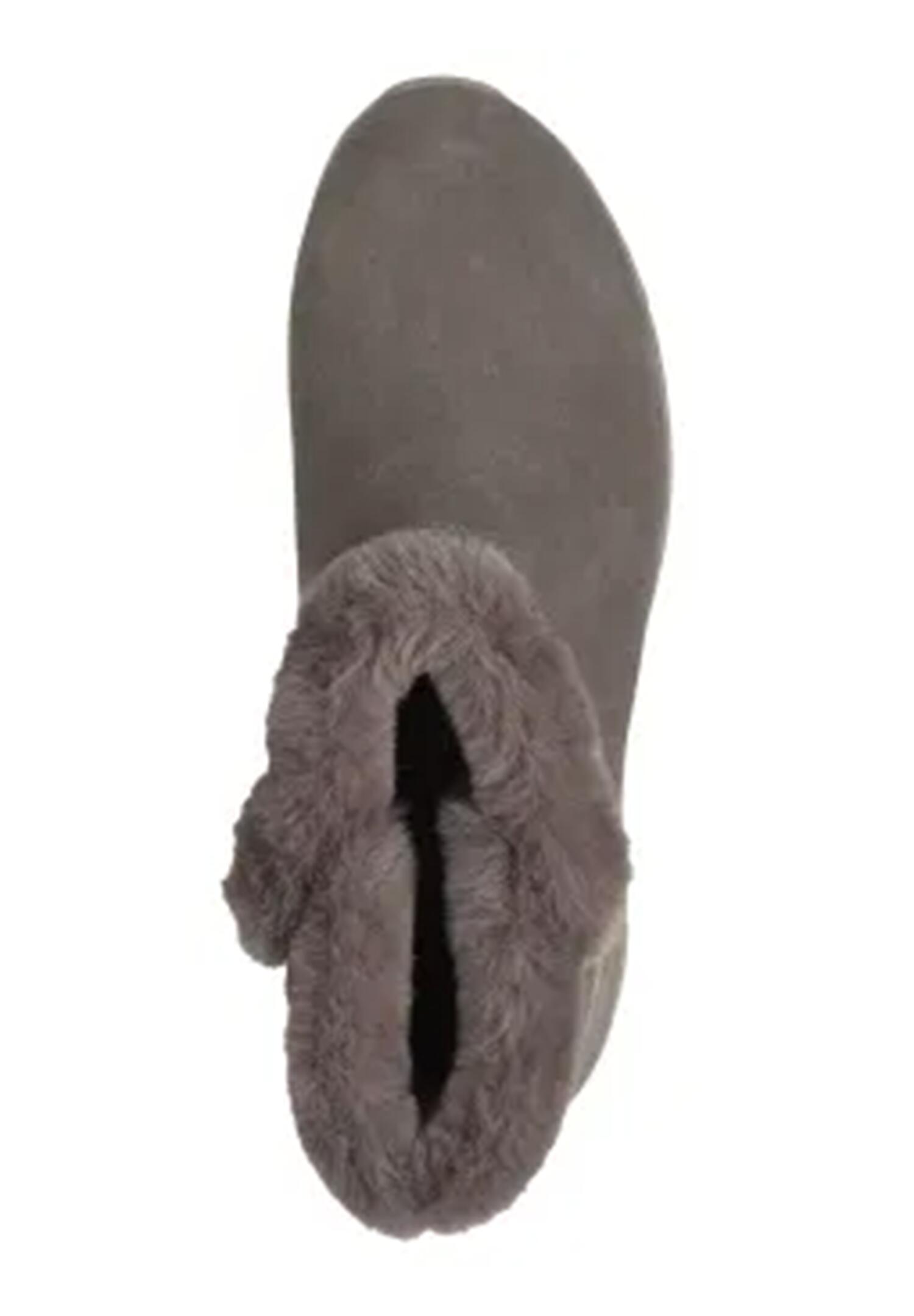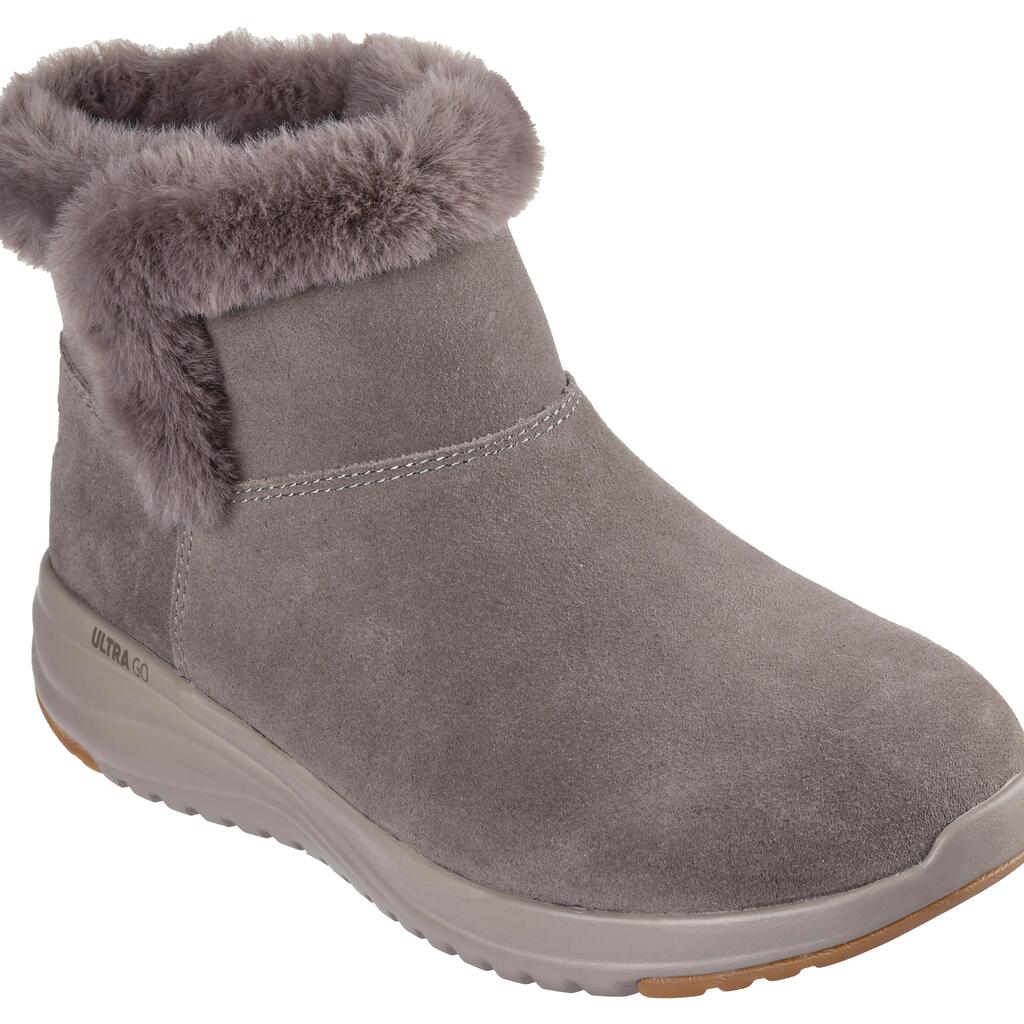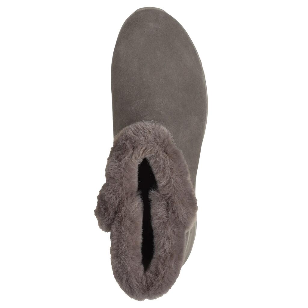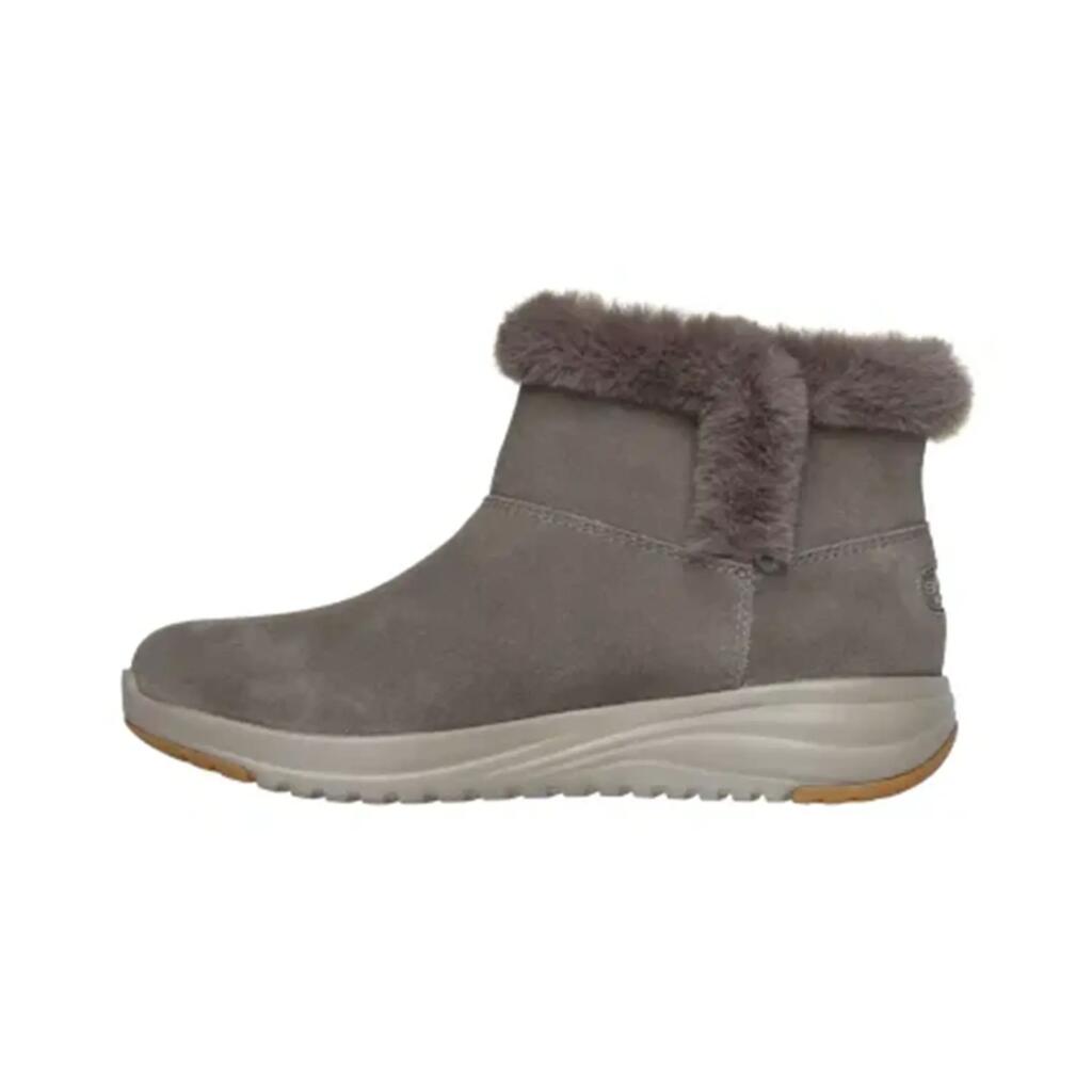 The Skechers On-the-GO Stellar - Cozy Step: With a waterproof suede upper, faux fur trim and lining, and a Skechers Air-Cooled Goga Mat insole.