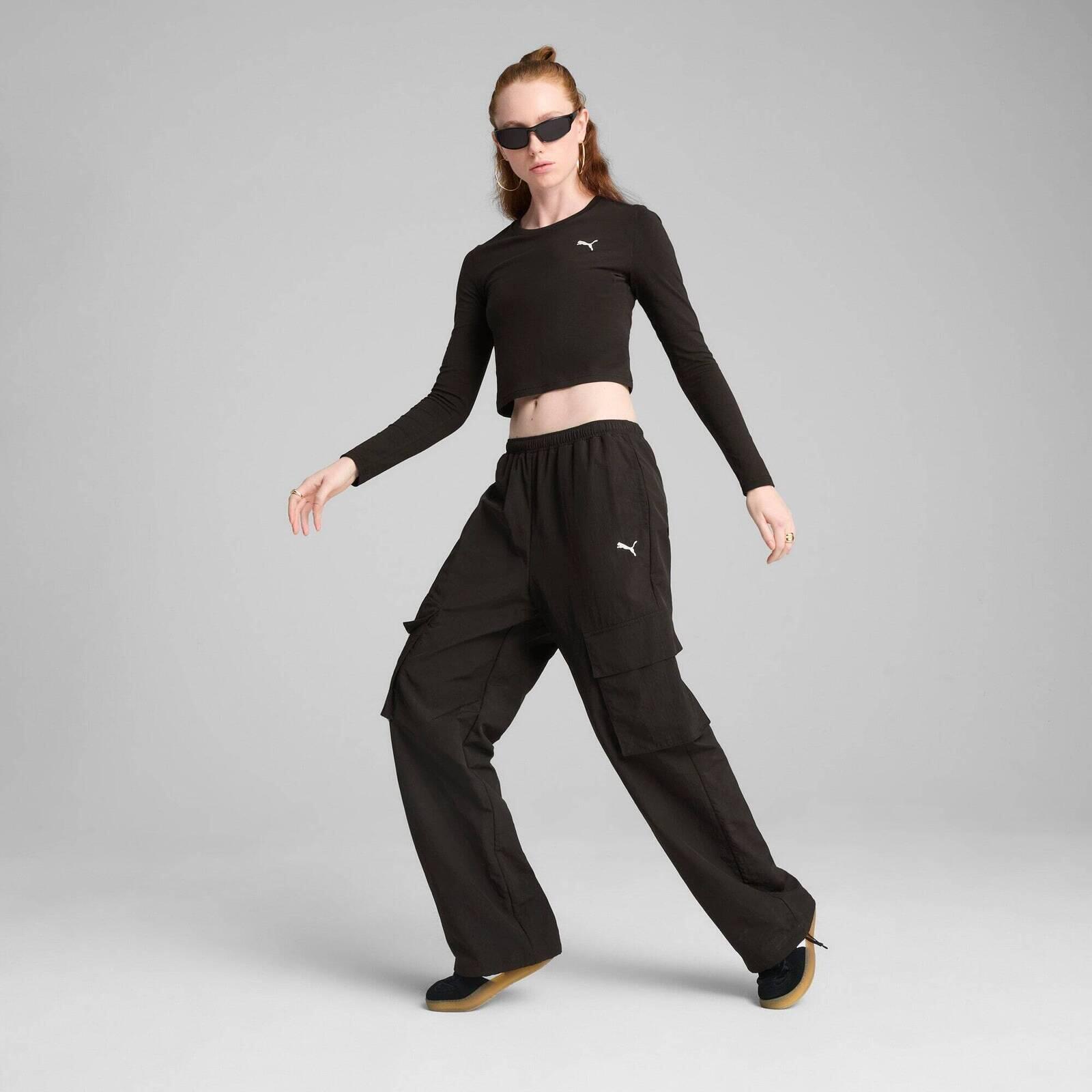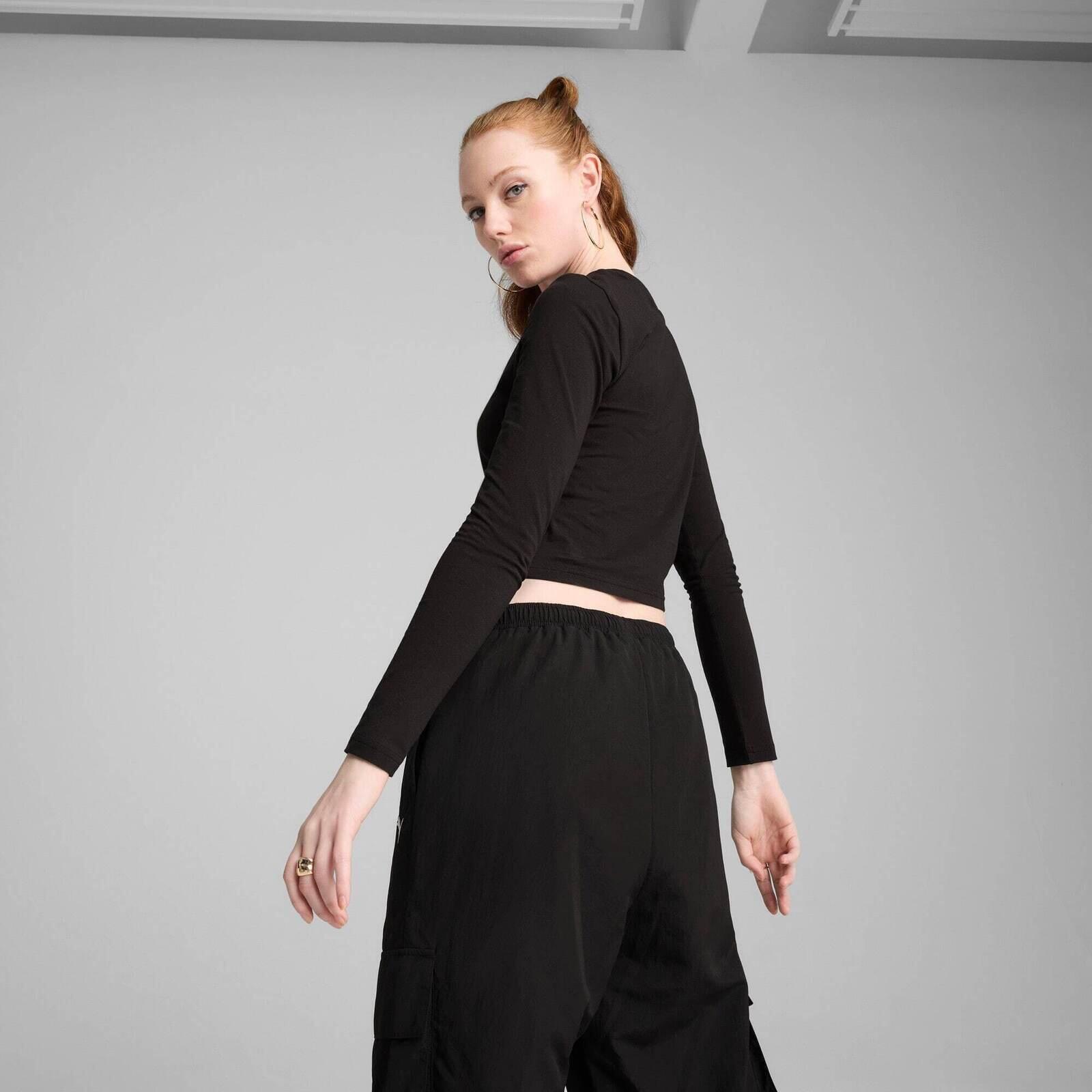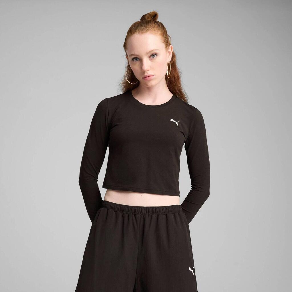 Blouse Puma Wardrobe Ess Longsleeve Baby Tee, Black, Women