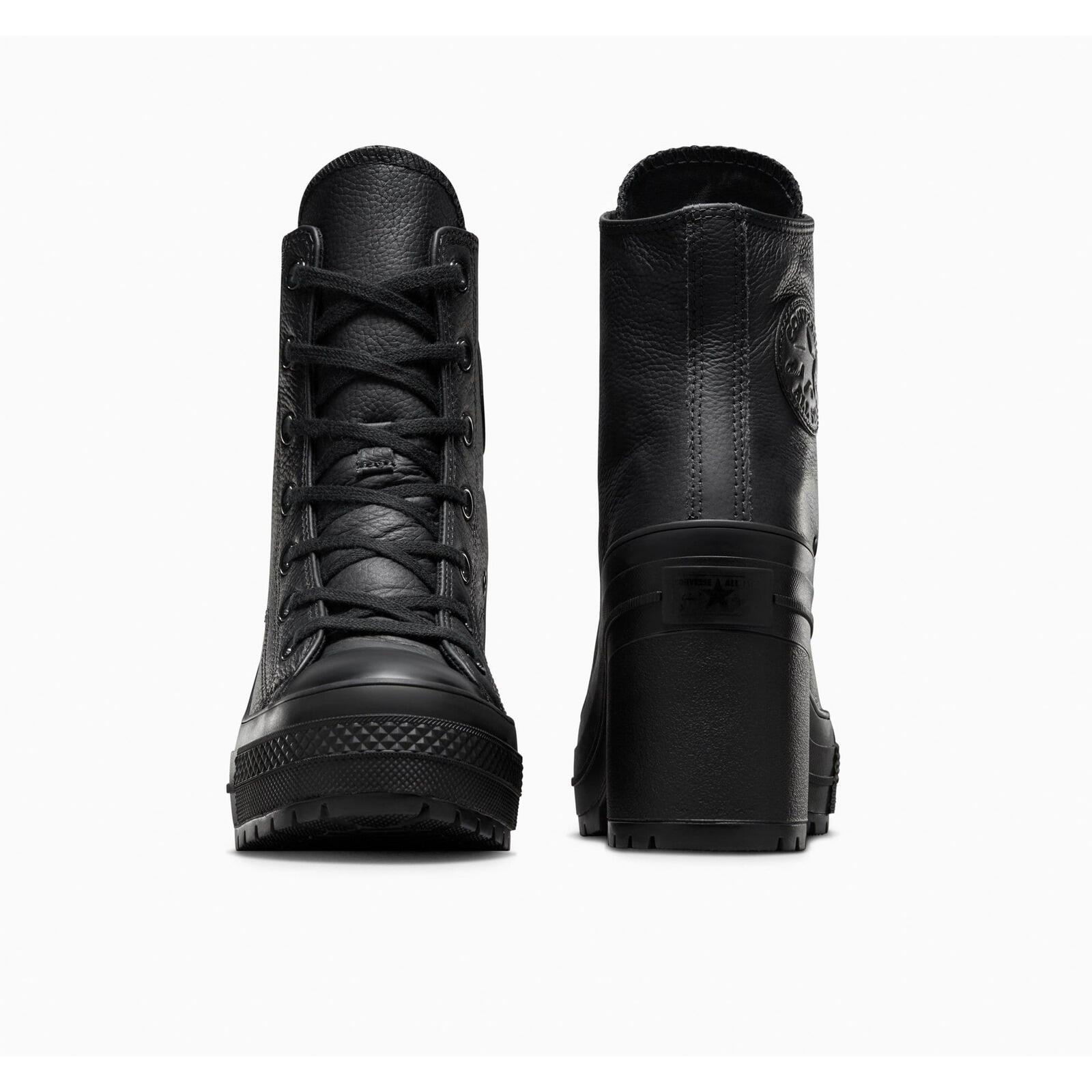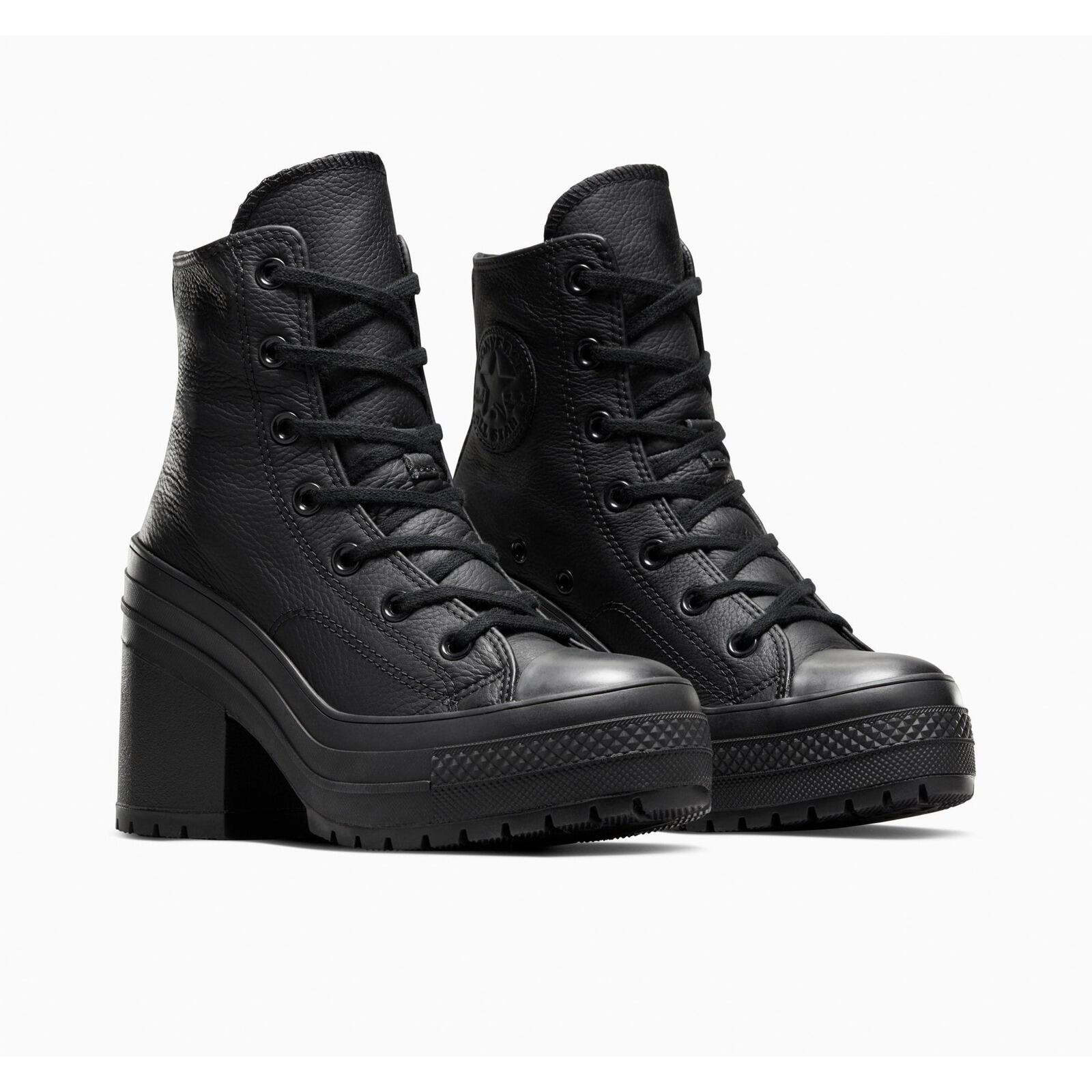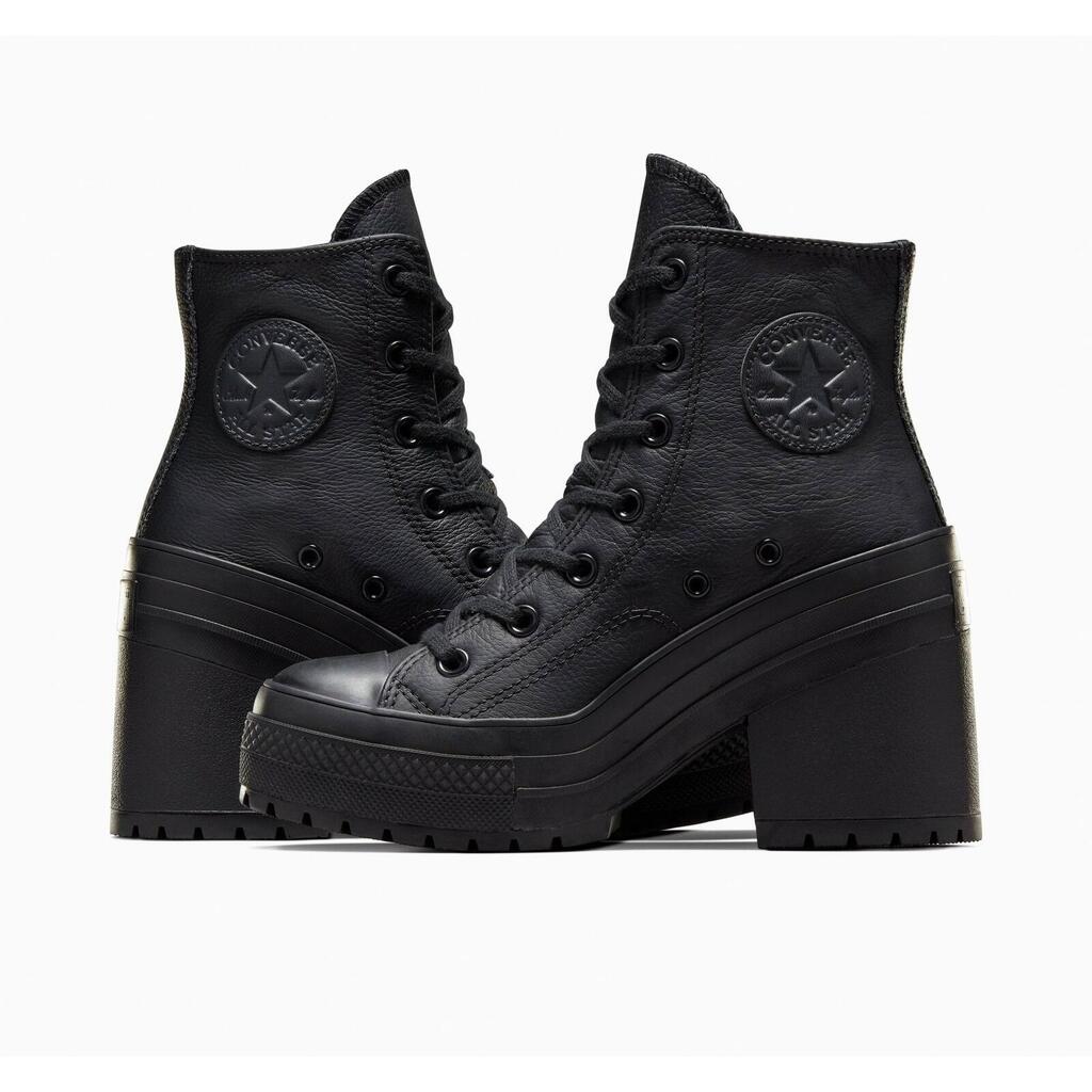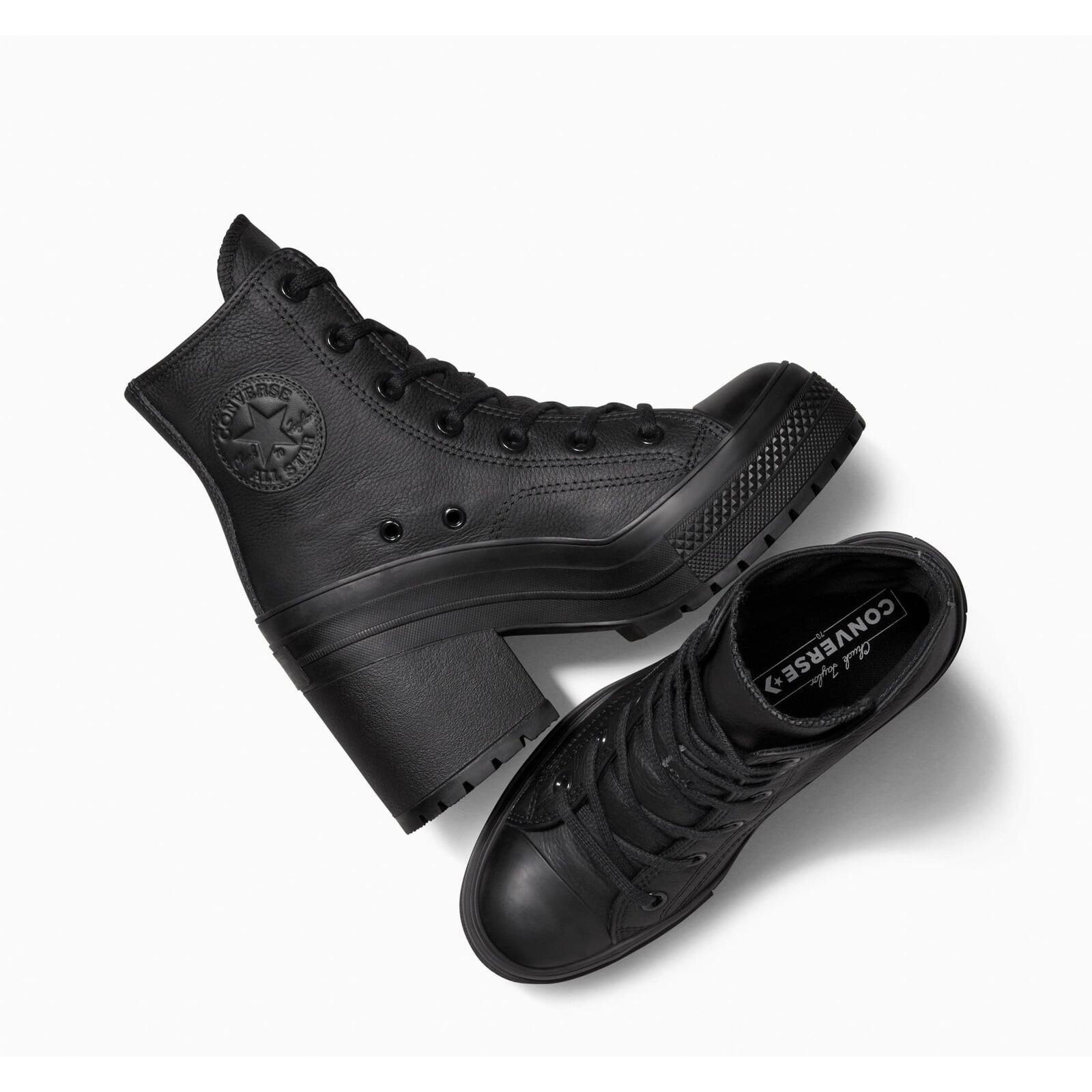 Stylish Converse Chuck 70 De Luxe Heel Hi women's sneakers in black leather with rubber sole, perfect for lifestyle and bold looks.