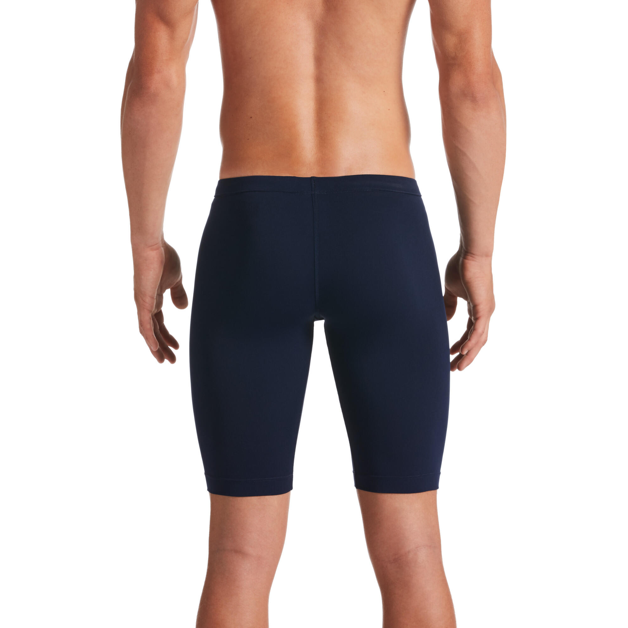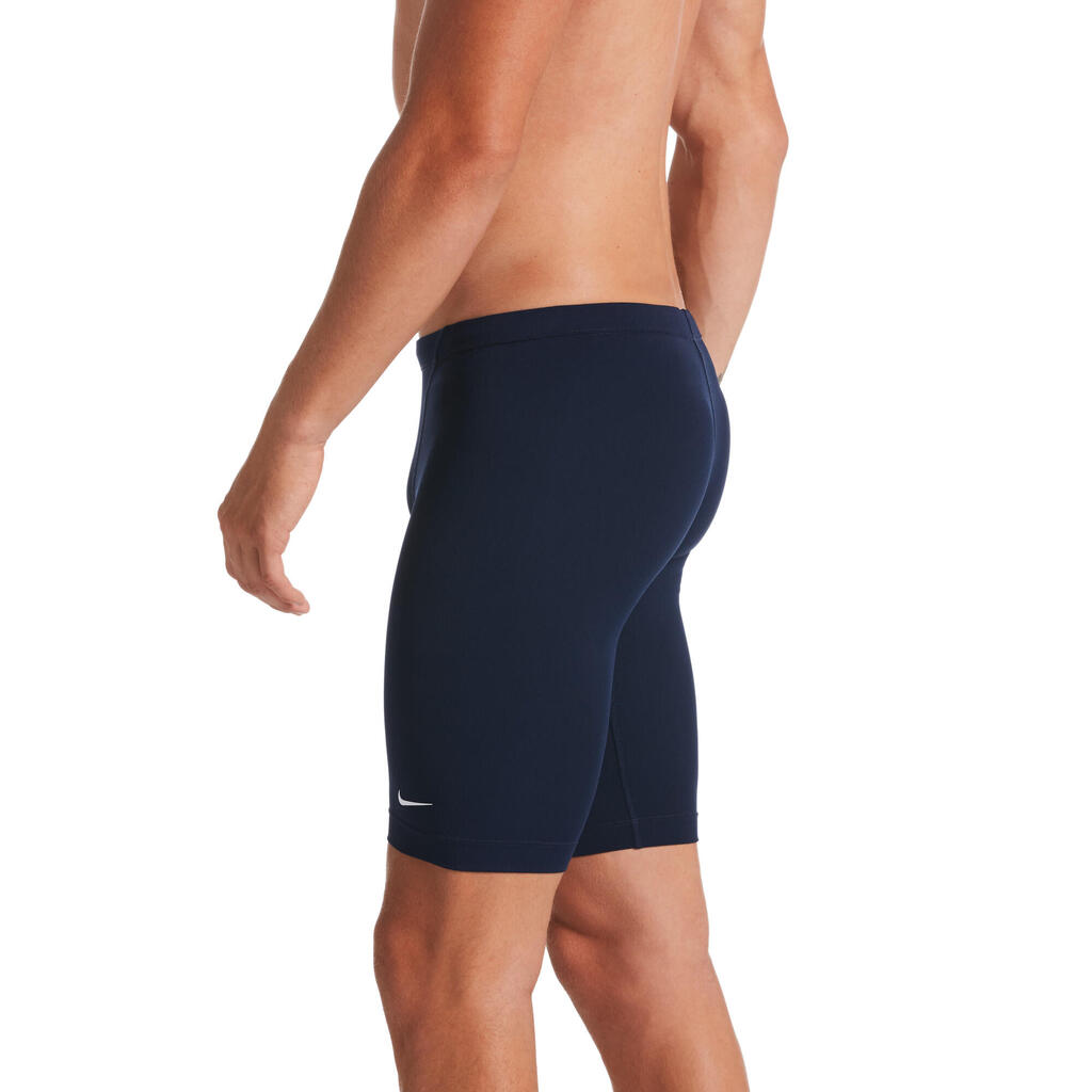 Chlorine-resistant NIKE boys' jammers in black with secure drawcord and quick-drying HydraStrong fabric.