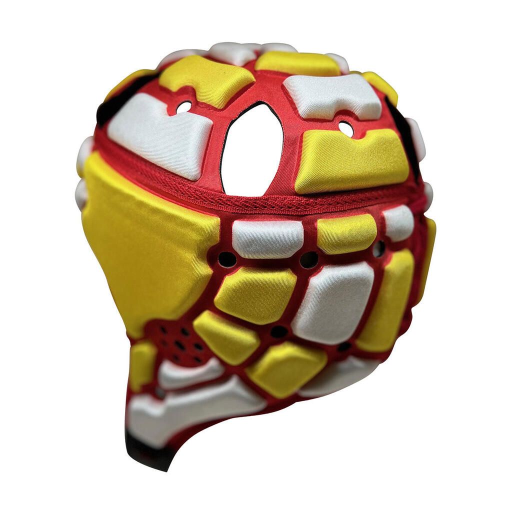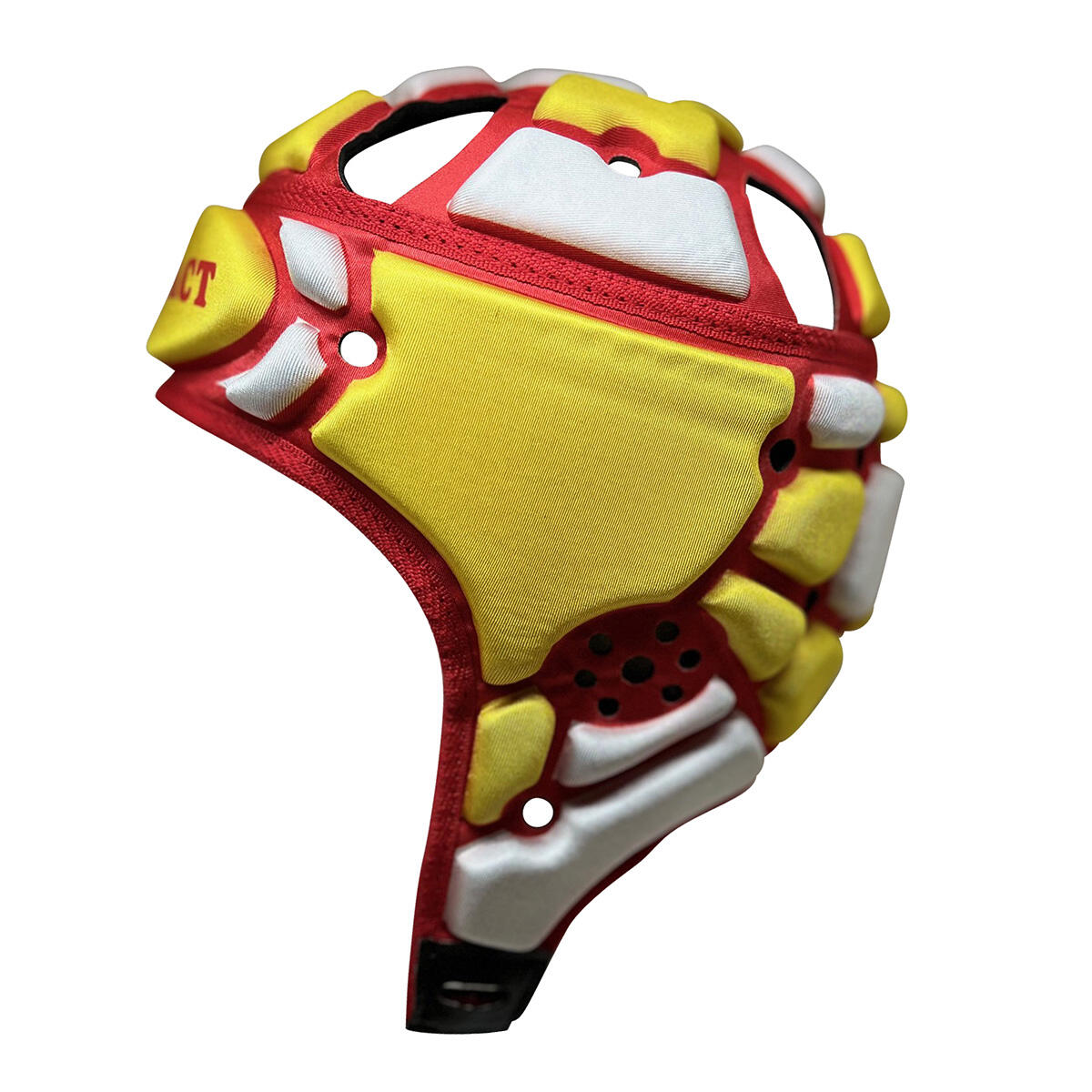 Impact Square-Pattern Rugby Headguard Yellow, White and Red