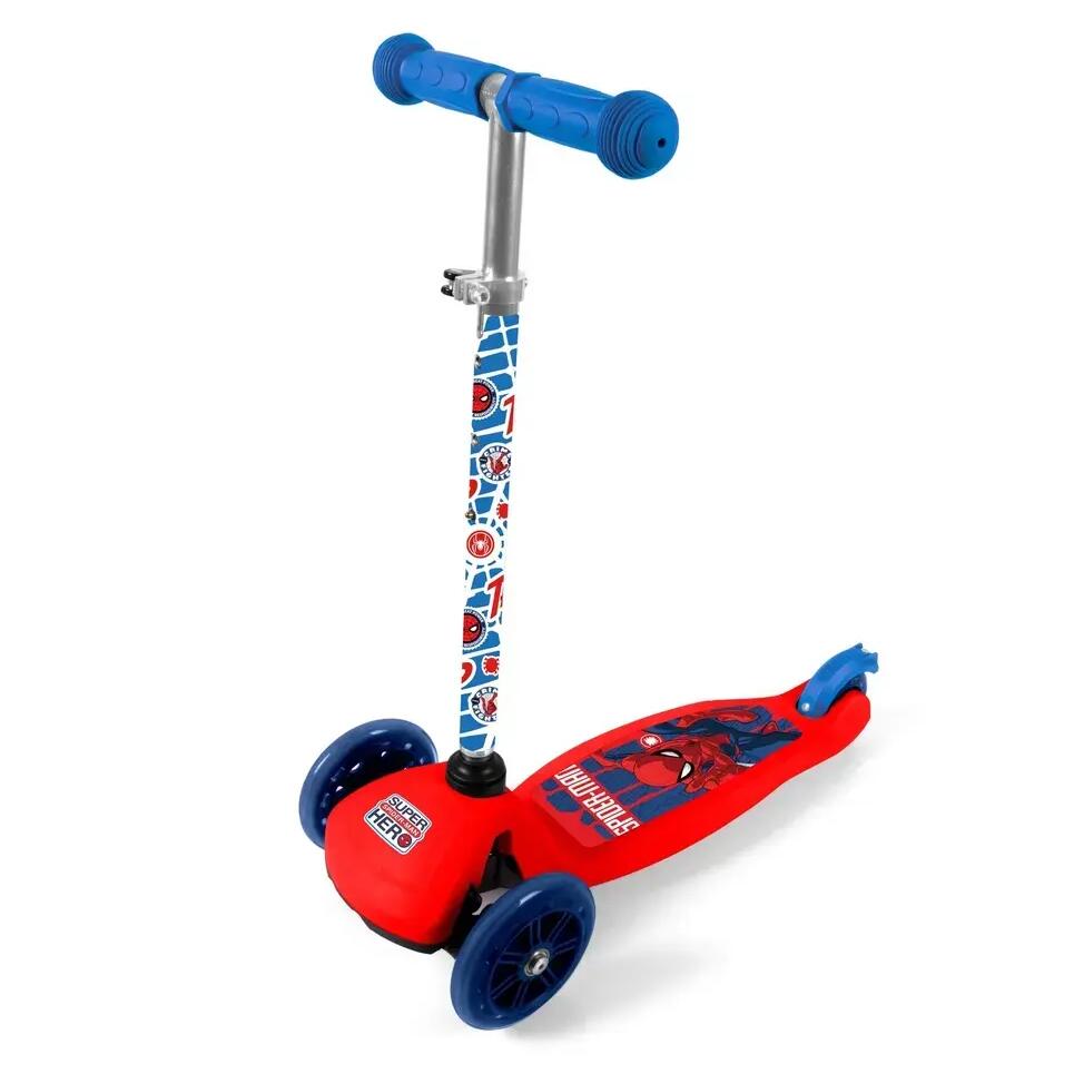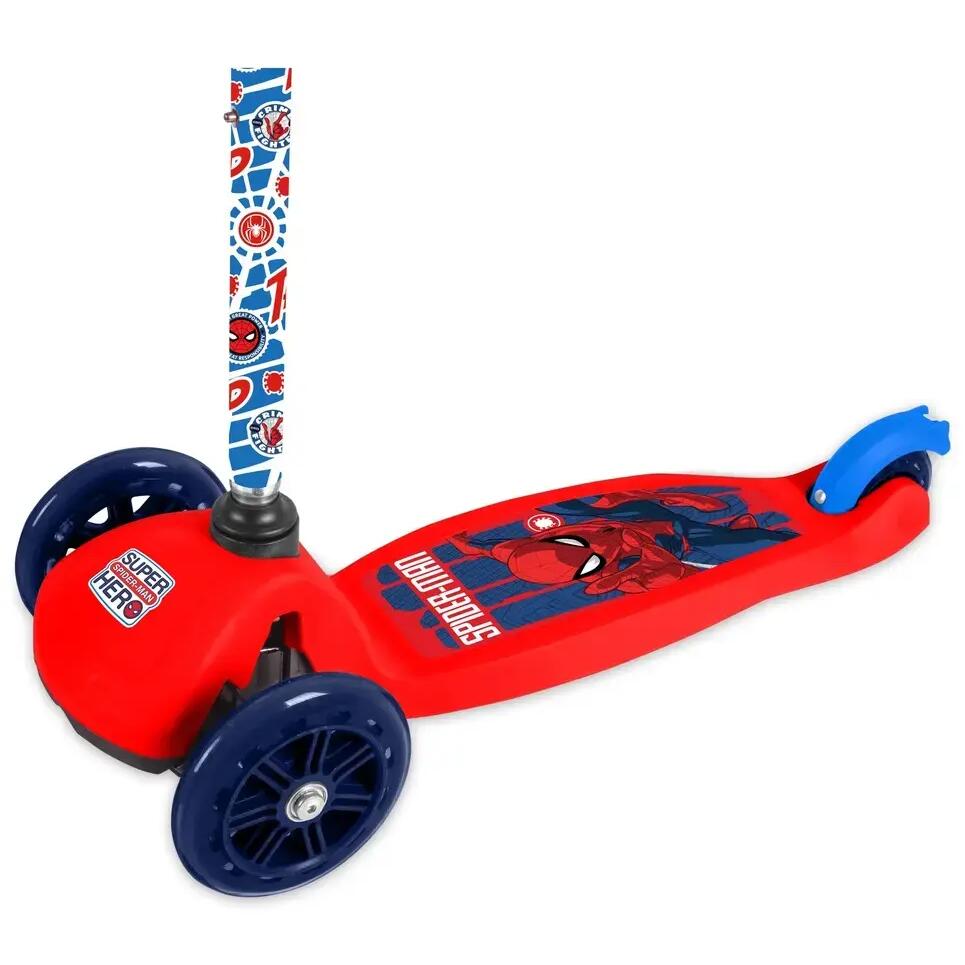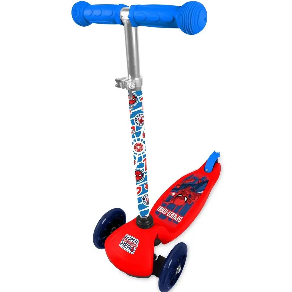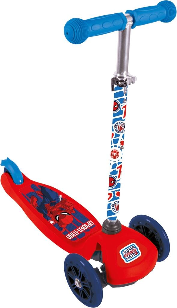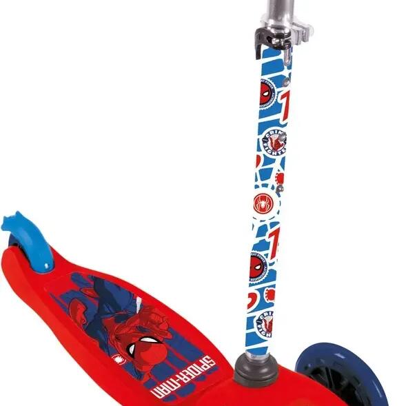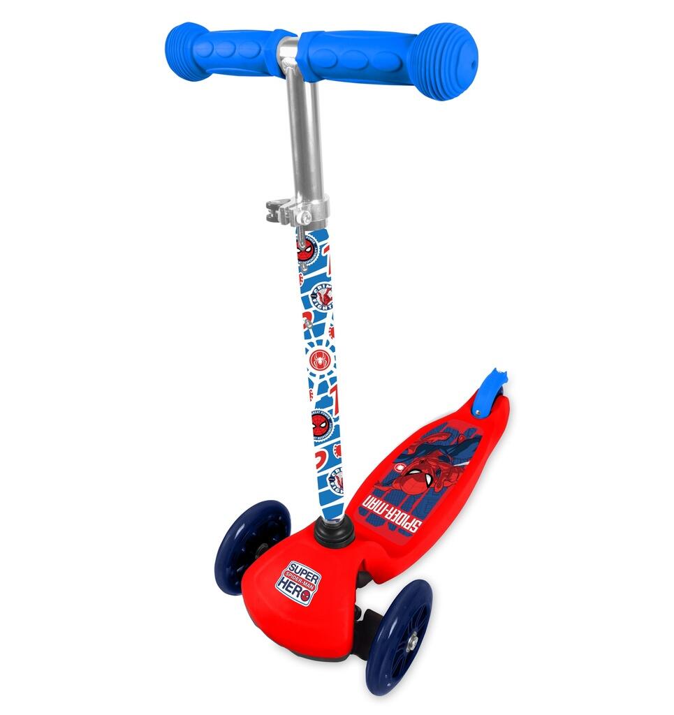 3-wheel scooter with Spider-Man design for children. Lean-to-steer, adjustable handlebar, stable and safe. Perfect first scooter for ages 3+.