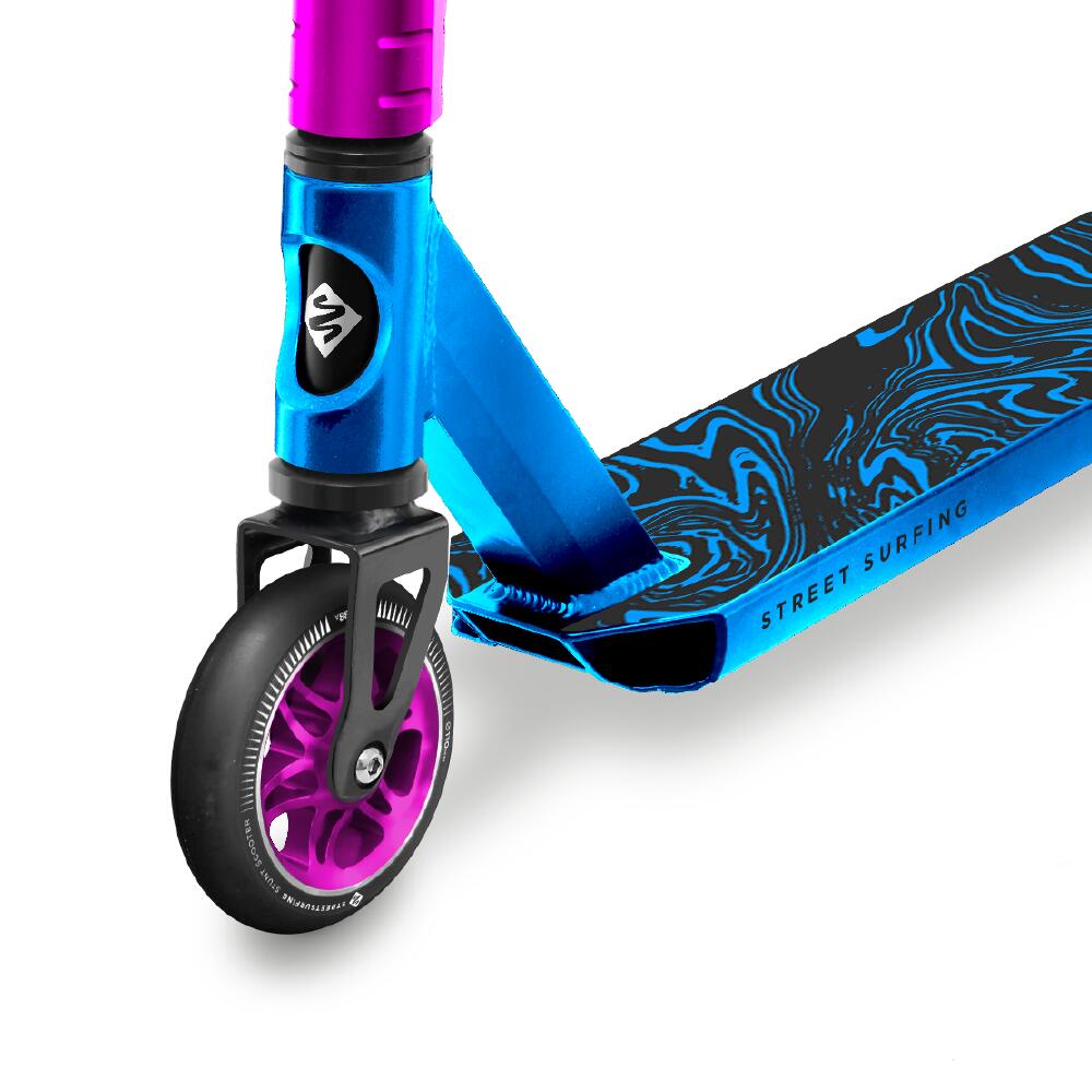 Street Surfing Ripper stunt scooter: top quality and performance. Robust 6061-T6 aluminum deck, Chromoly handlebars, HIC compression, 110mm wheels, Abec 9 bearings.