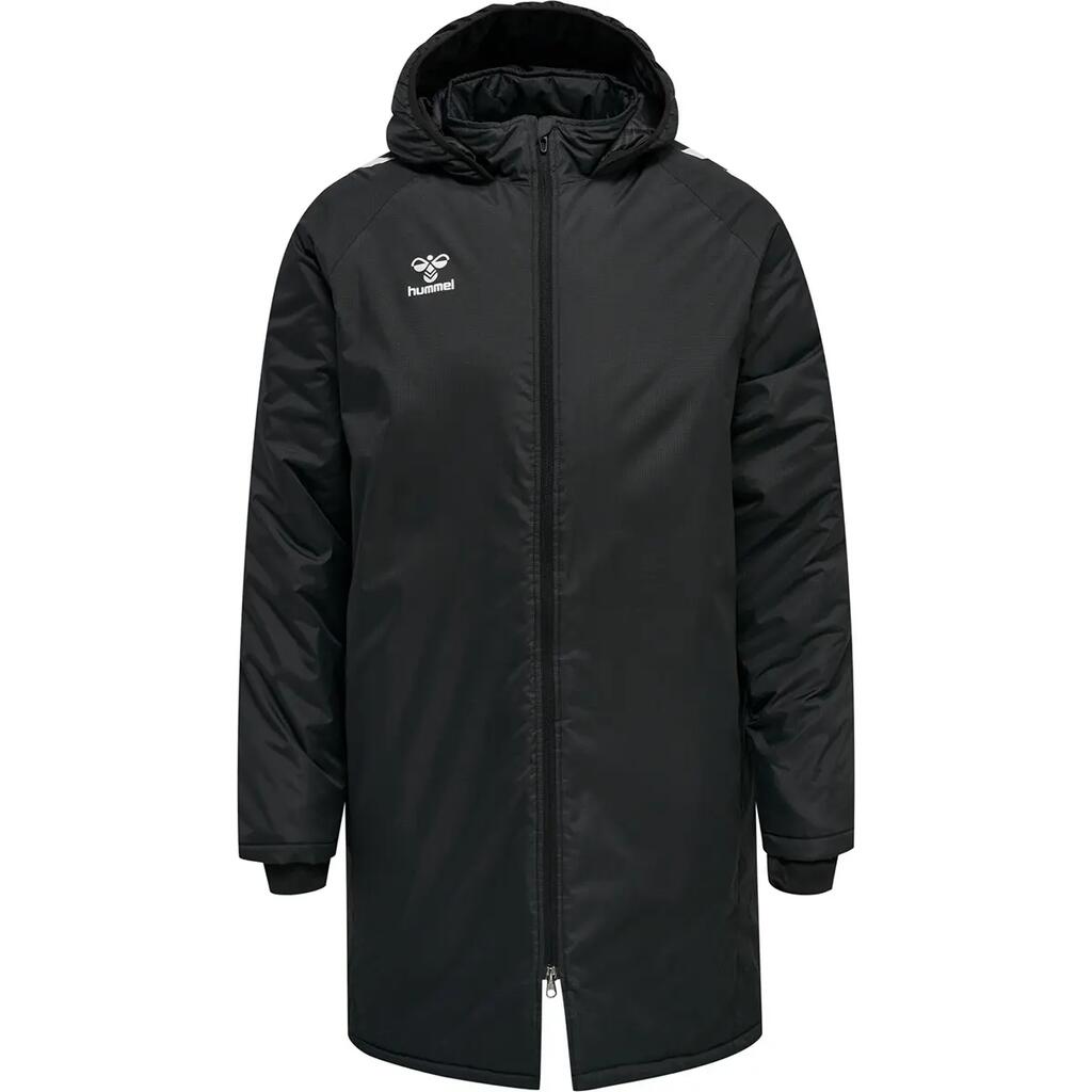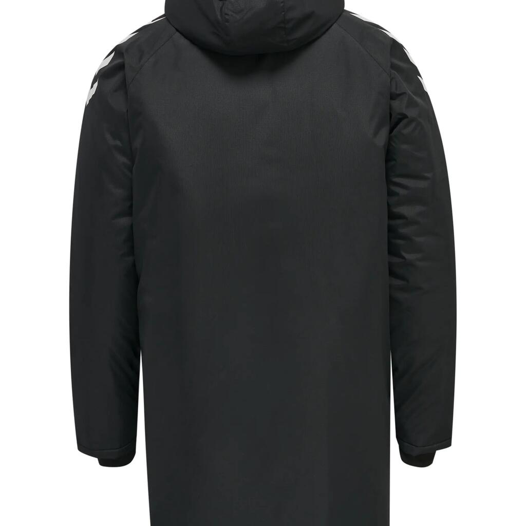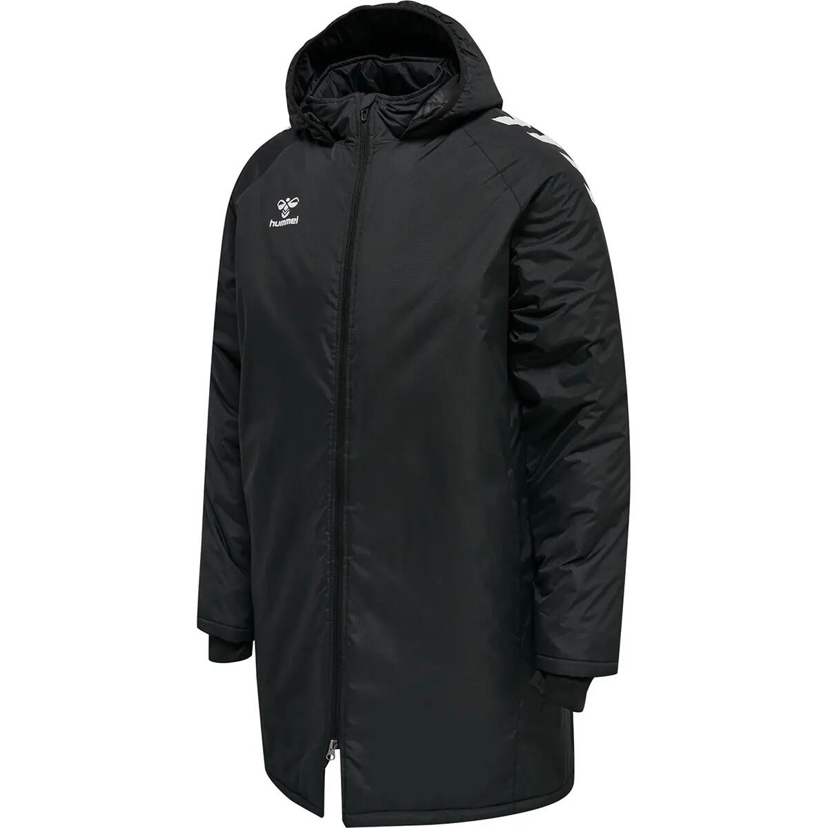 The must-have jacket Hummel Bench: woven fabric, quilted padding and storm cuffs. Available in sizes up to 4XL, with logo and herringbone print.