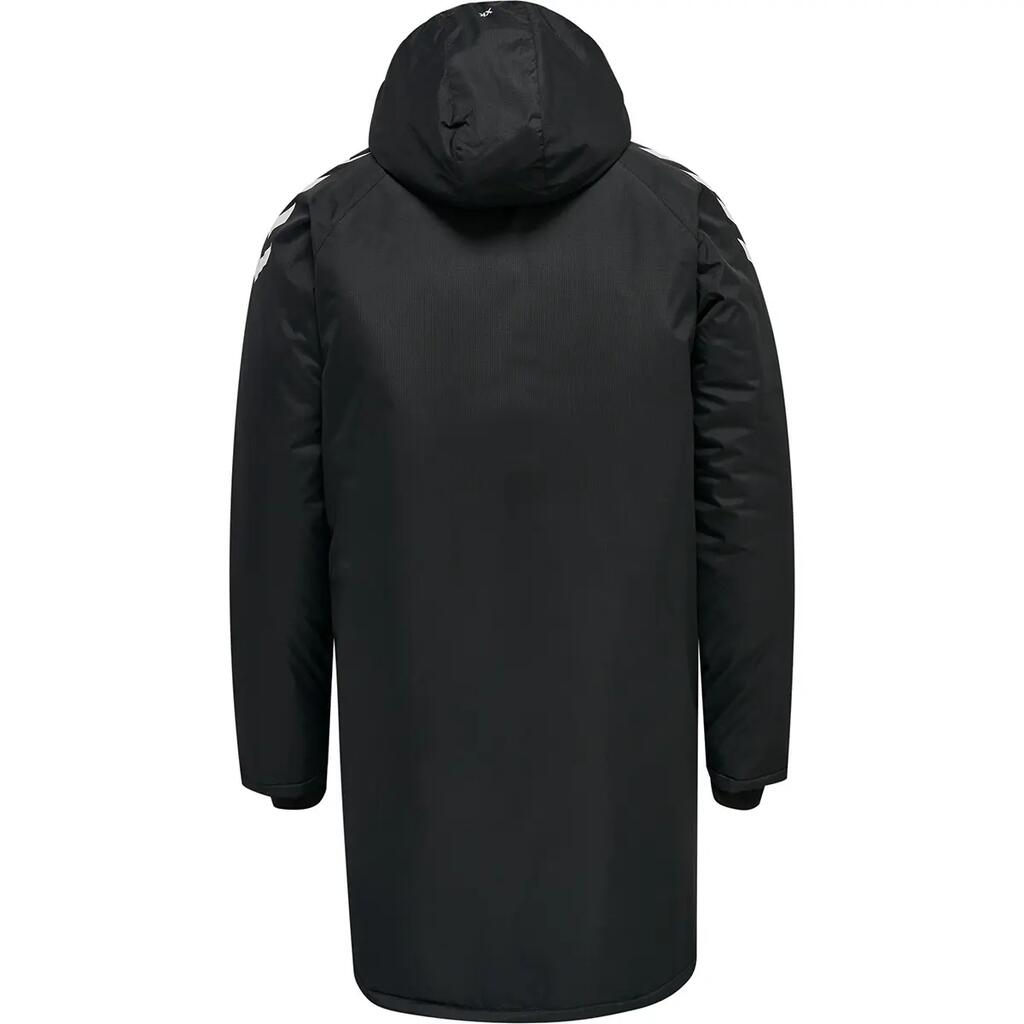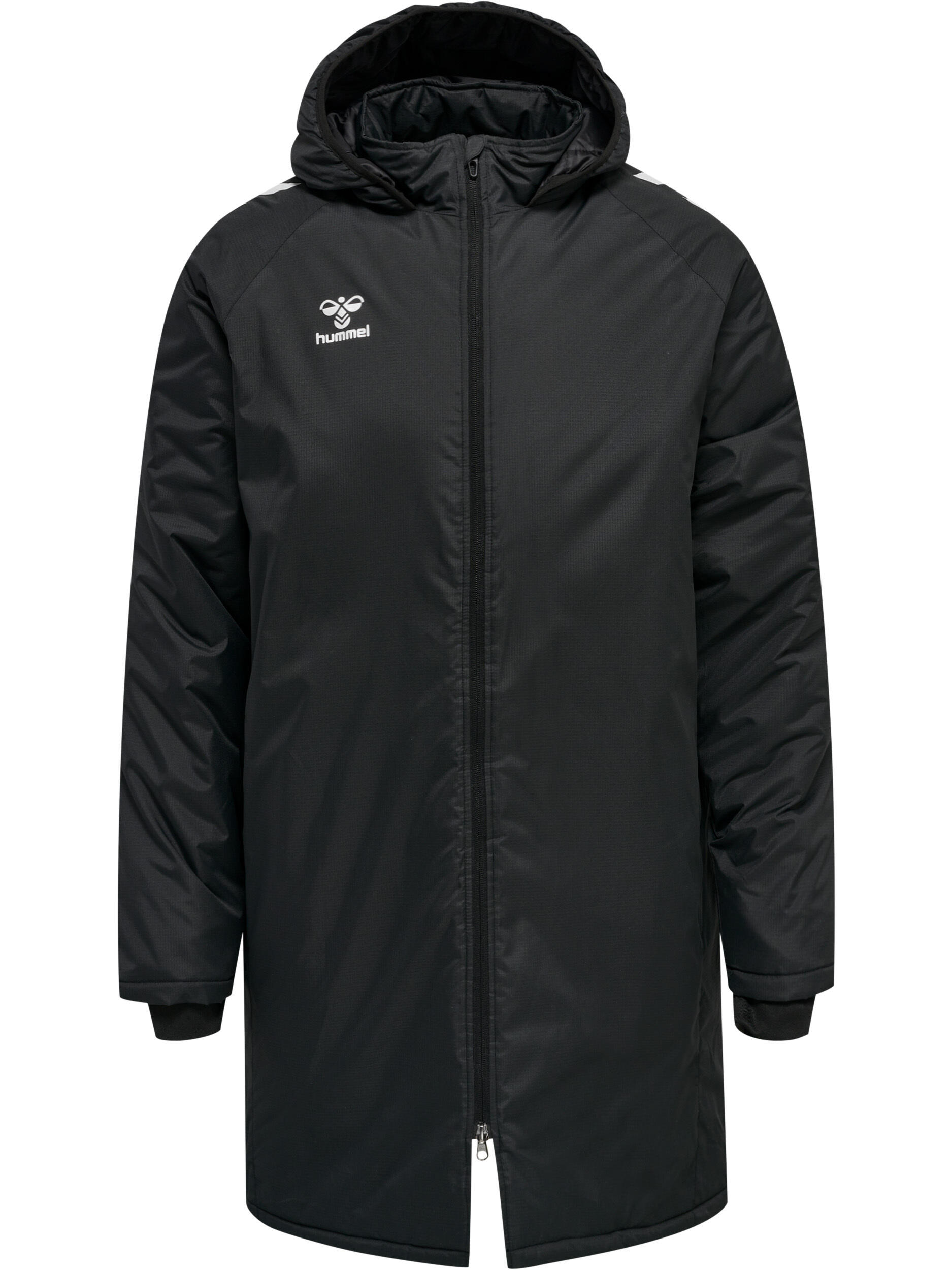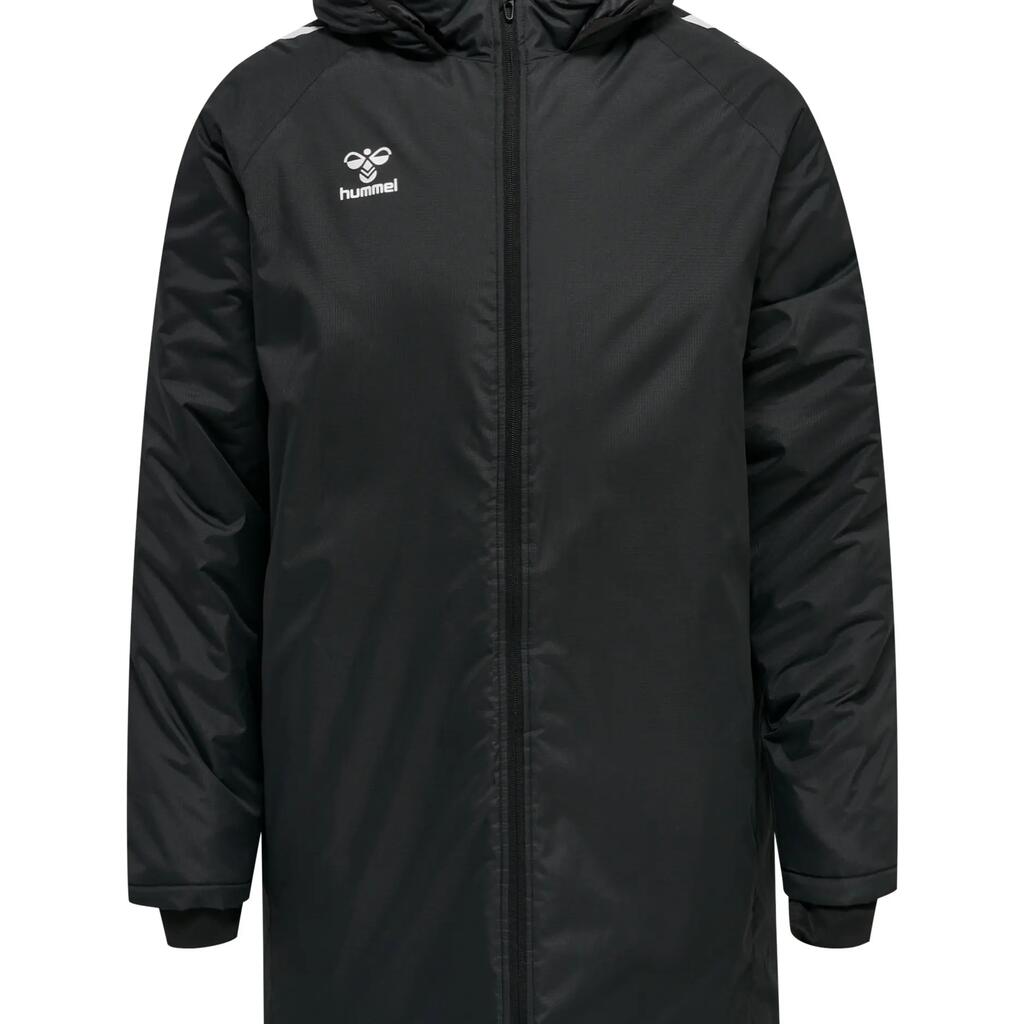 The must-have jacket Hummel Bench: woven fabric, quilted padding and storm cuffs. Available in sizes up to 4XL, with logo and herringbone print.