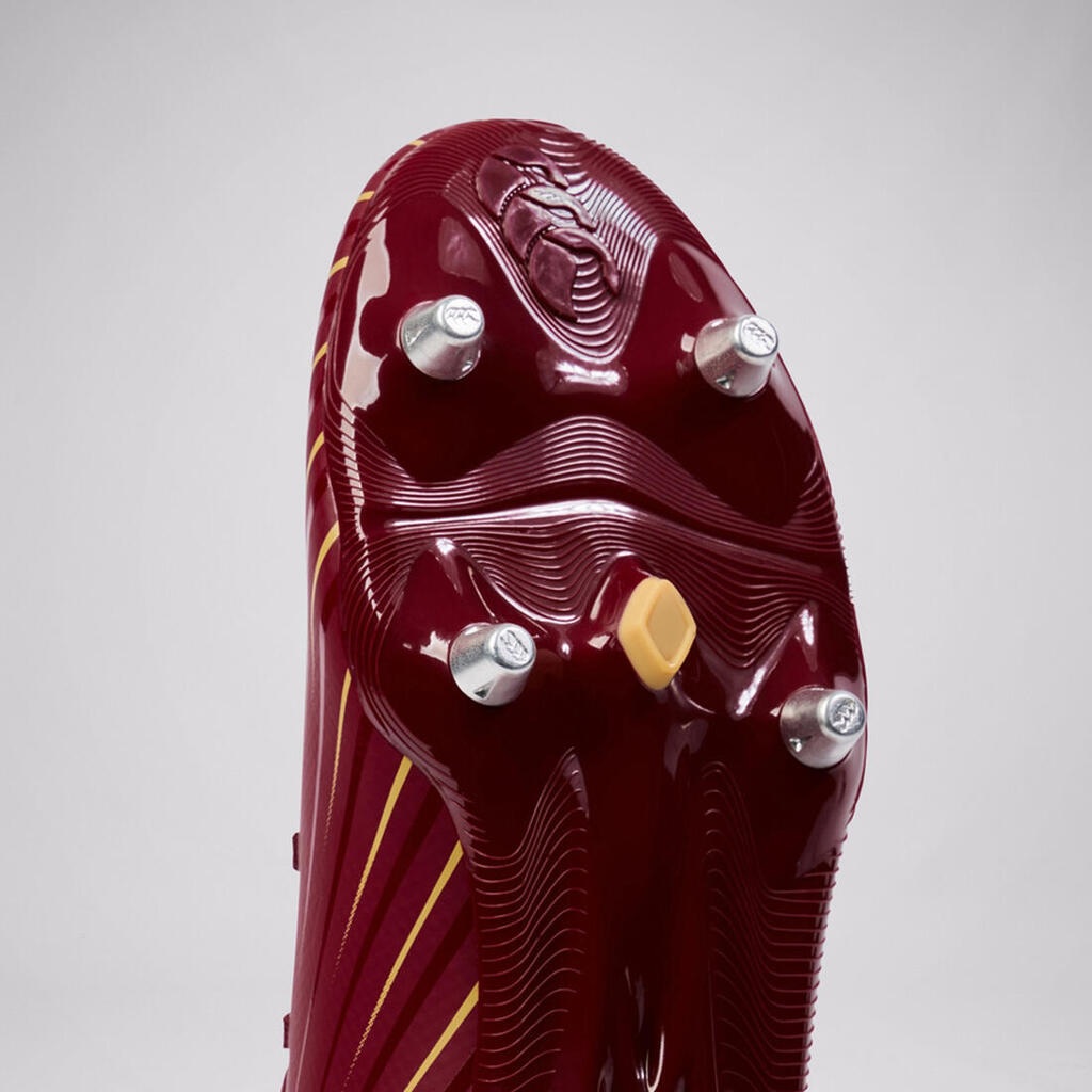 Lightweight football and rugby studs for soft ground, offering excellent traction, abrasion-resistant TPU upper, asymmetrical lacing for precise fit, and breathable construction.