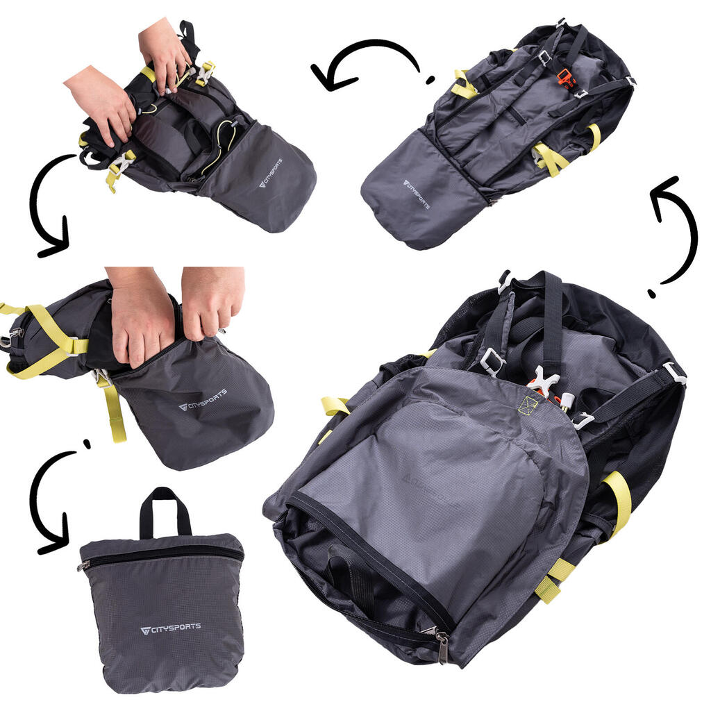 Lightweight 20L hiking backpack in grey, foldable with rain cover, perfect for hiking, commuting, and short trips.