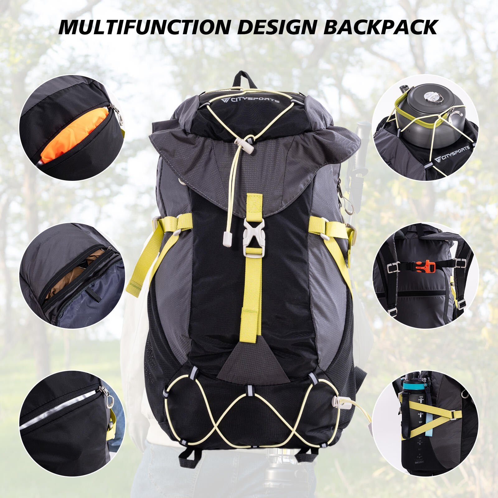 CITYSPORTS 20L Lightweight Hiking Backpack with Rain Cover, Grey