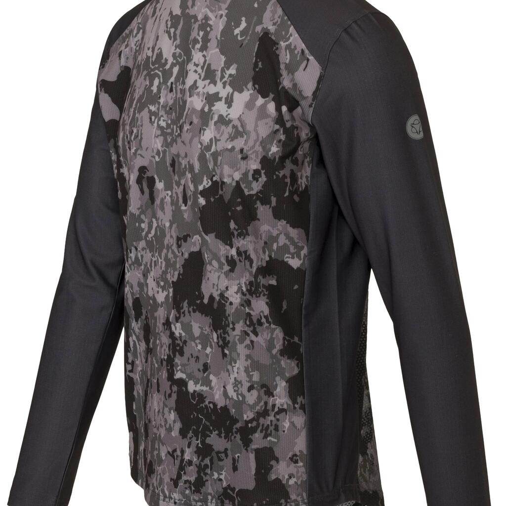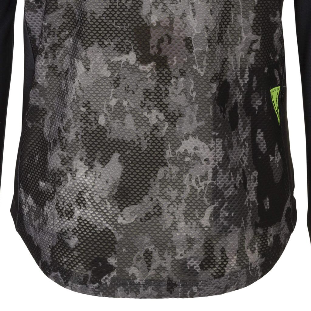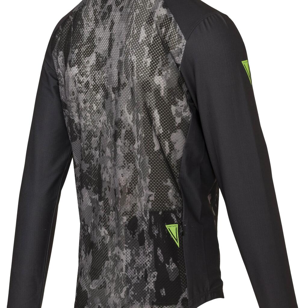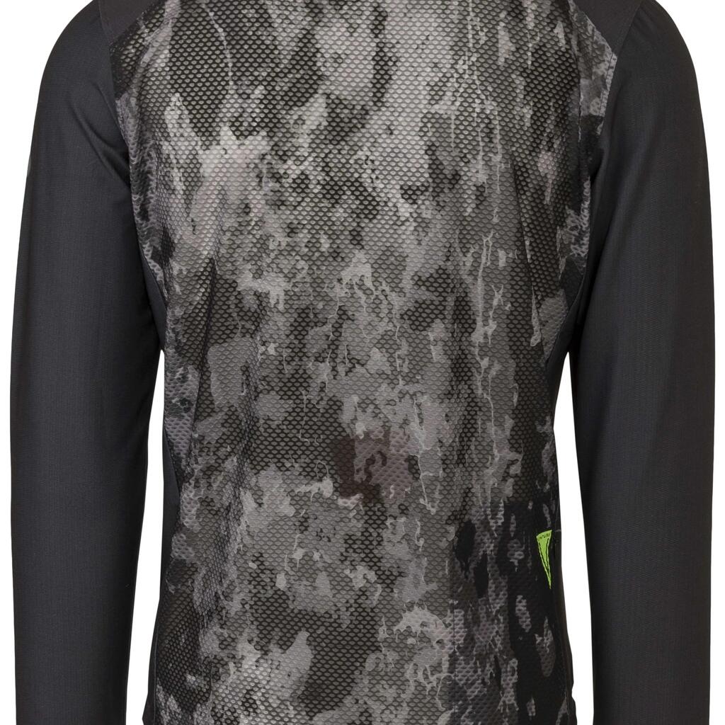 A true mountain bike cycling shirt that is multi purpose. The shirt is made of recycled polyester, making it a durable choice. Thanks to the mesh panels, the bike shirt is extra breathable and allows you to adventure comfortably. On the shoulders, it is reinforced to prevent wear from, for example, a backpack. There is one back pocket, equipped with a hidden zip to keep all your belongings in place.
