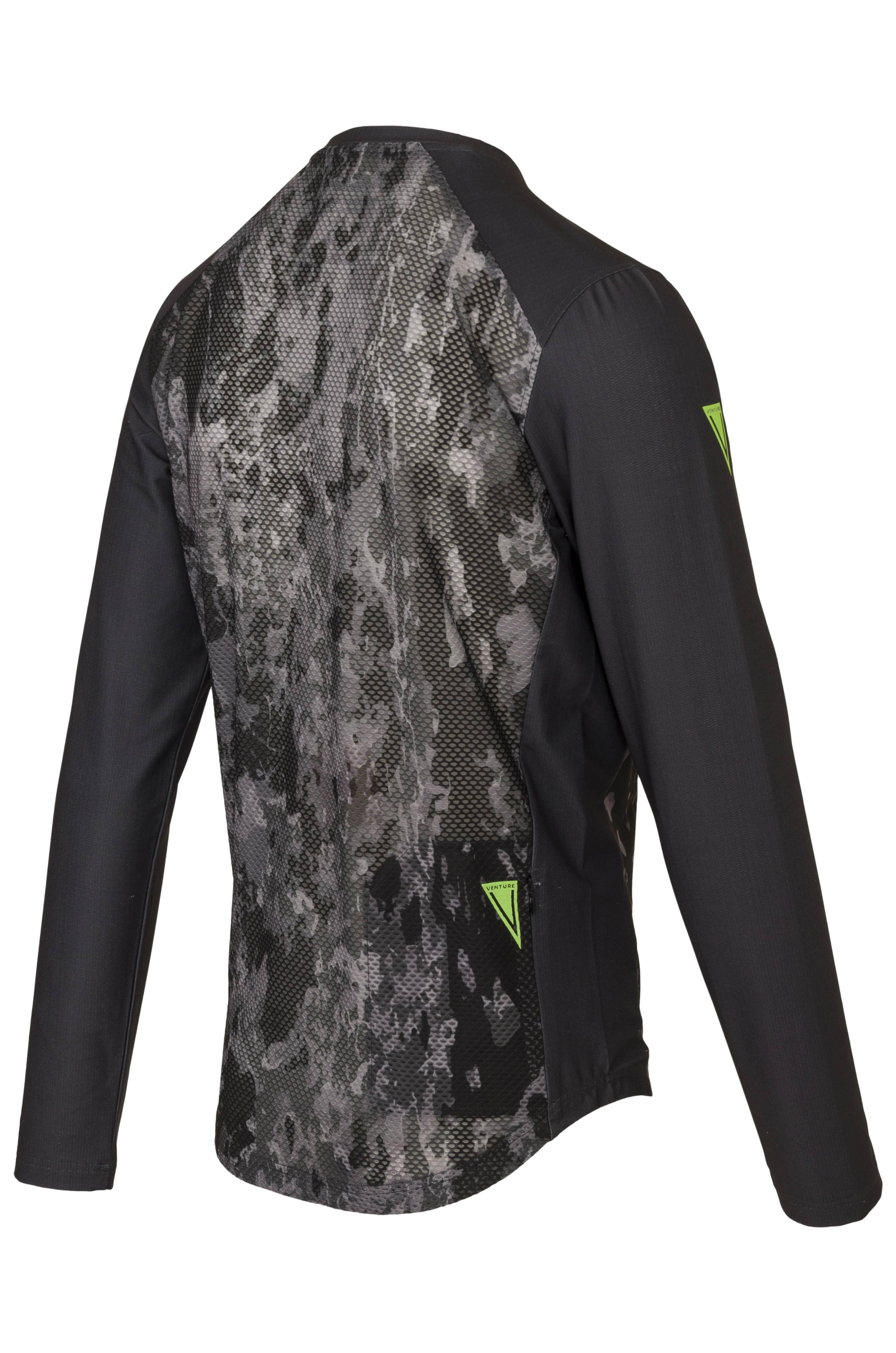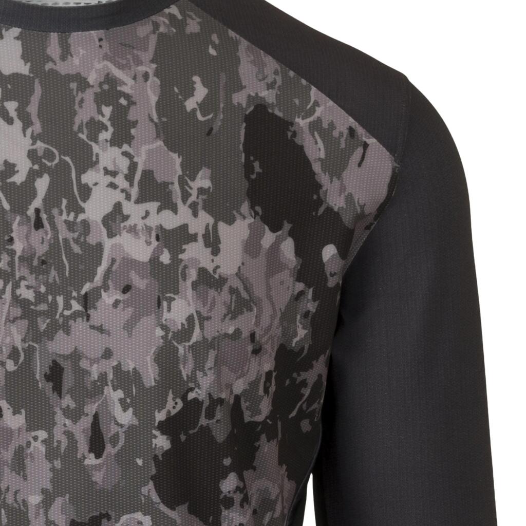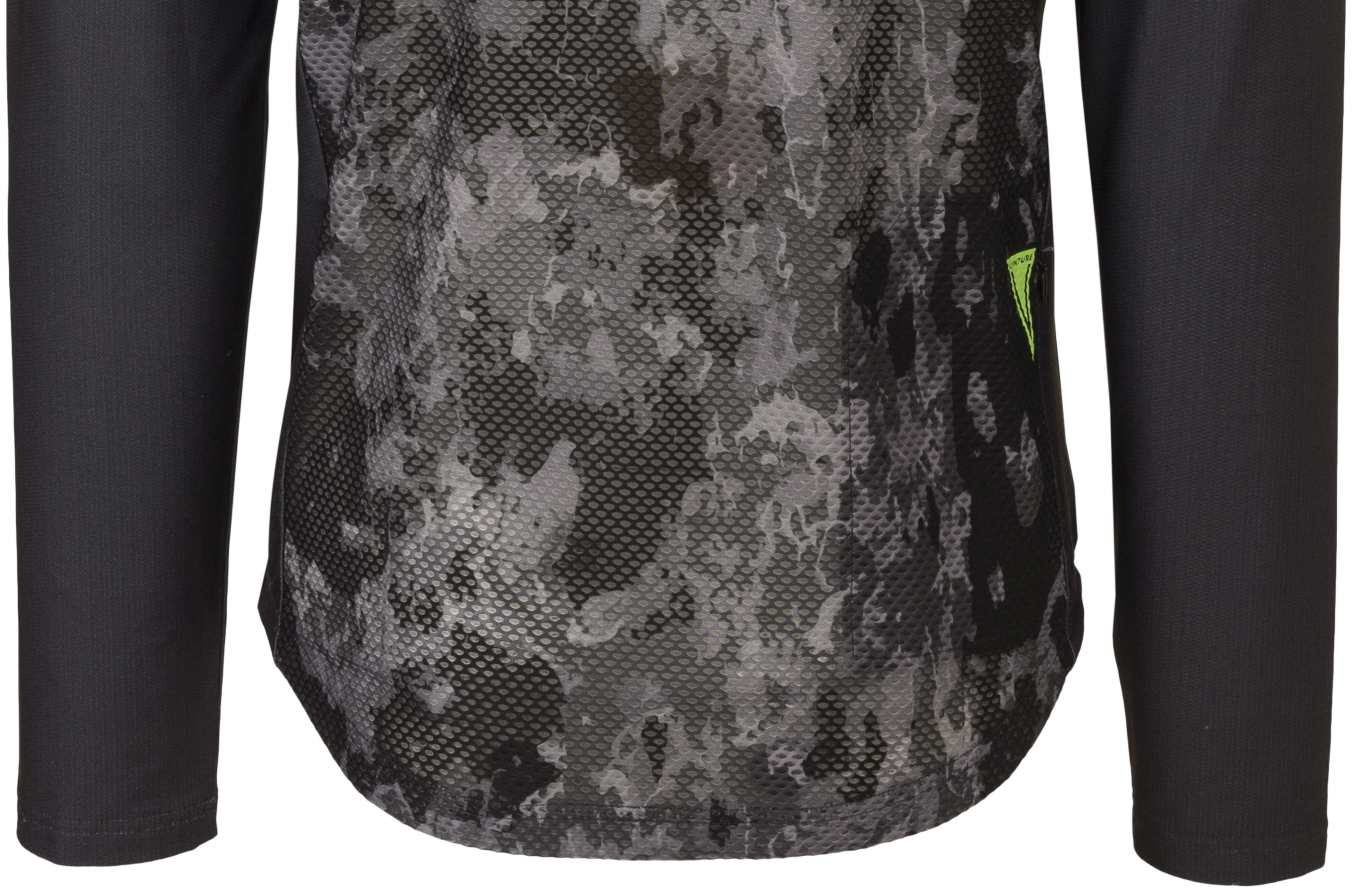 A true mountain bike cycling shirt that is multi purpose. The shirt is made of recycled polyester, making it a durable choice. Thanks to the mesh panels, the bike shirt is extra breathable and allows you to adventure comfortably. On the shoulders, it is reinforced to prevent wear from, for example, a backpack. There is one back pocket, equipped with a hidden zip to keep all your belongings in place.