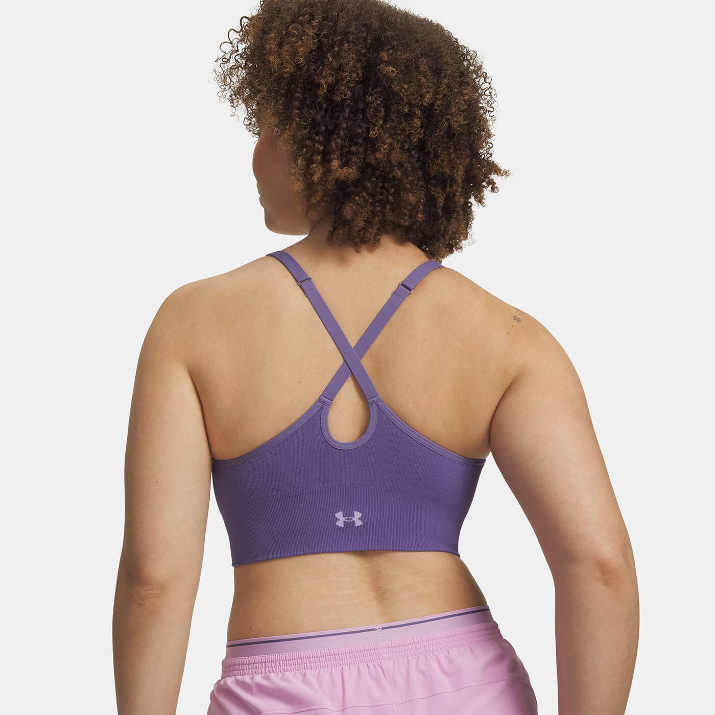 This Under Armour Vanish Seamless light-support sports bra delivers seamless comfort and excellent breathability for yoga, Pilates or hiking. Adjustable crossed straps and removable cups improve fit.