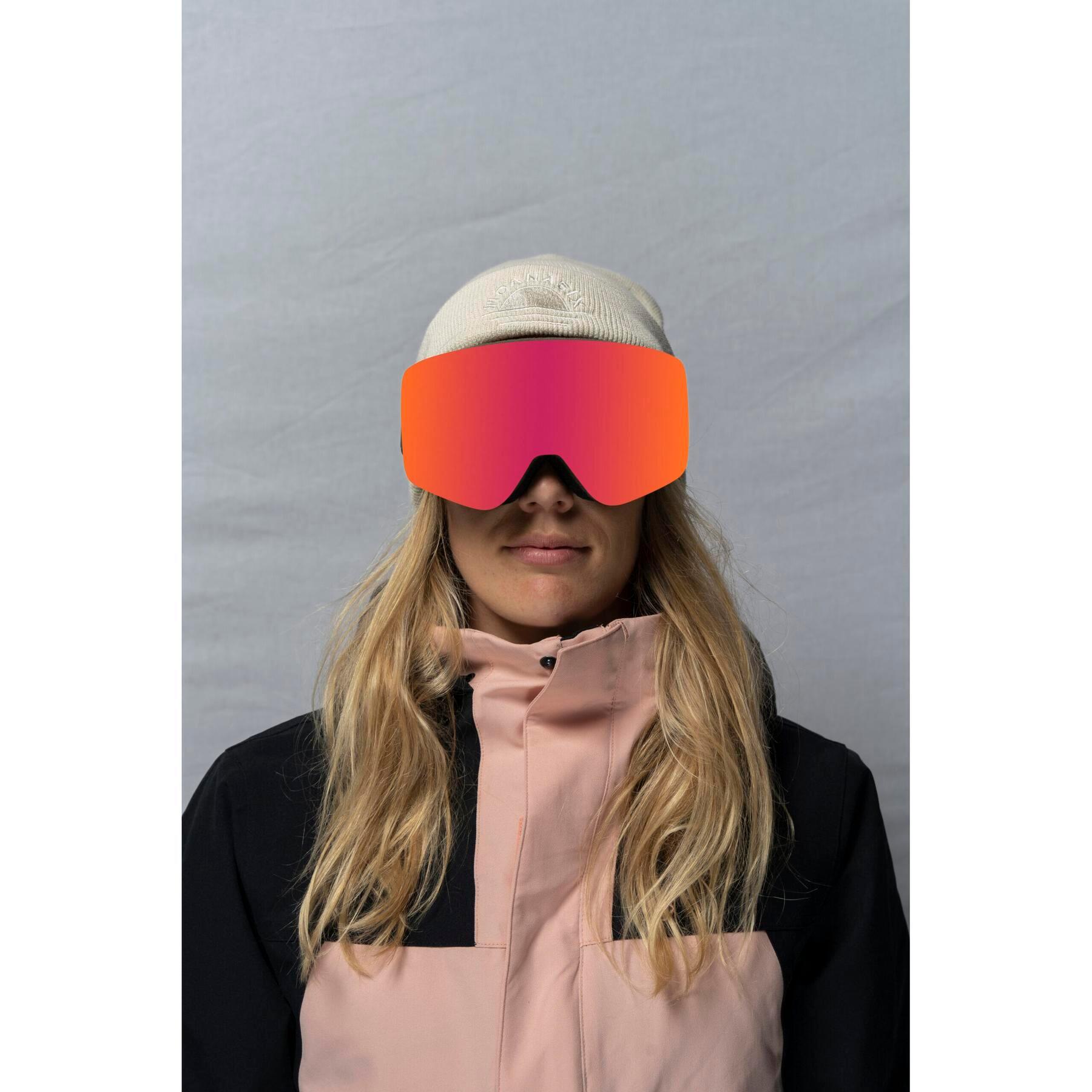 Designed for smaller heads, the OXIA goggles feature a cylindrical lens that offers exceptional optical clarity. Its compact design does not compromise on style or functionality. The magnetic lens system allows for quick and easy changes, and the interchangeable RSS strap provides personalised comfort. The Airflux ventilation ensures good airflow, and the soft three-layer foam guarantees comfort throughout the day. The anti-fog treatment on the inner lens ensures clear vision during your descent.