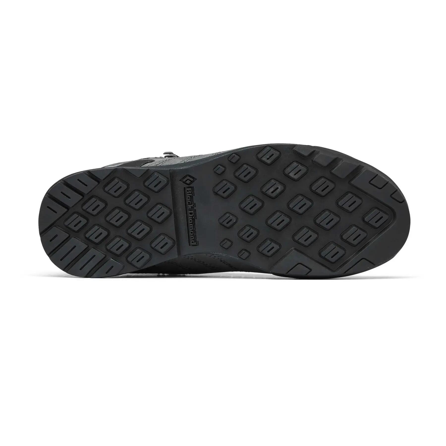 Designed for large-scale itineraries, the Mission Leather Mid WP is an approach shoe that provides effective ankle protection and the necessary support on long approaches with loaded packs. Combining a waterproof-breathable BDD lining with a top-of-the-range Nubuck leather upper, the Mission Leather Mid WP keeps out moisture while providing freedom of movement for traversing torrents and snowfields. The padded ankle protection allows you to progress over rough terrain such as scree; the special climbing forefoot and toe reinforcement incorporate our grippy BlackLabel rubber-Mountain for greater precision when the approach becomes more technical. The sole's studs offer excellent grip in mud, while the gusseted tongue guarantees maximum comfort while keeping out small stones and autres unwanted elements. The snug-fitting EVA midsole ensures maximum rigidity and precision, especially on steep terrain or via ferrata; strap loops offer a variety of ways to organize gear when the approach ends and the climb begins.