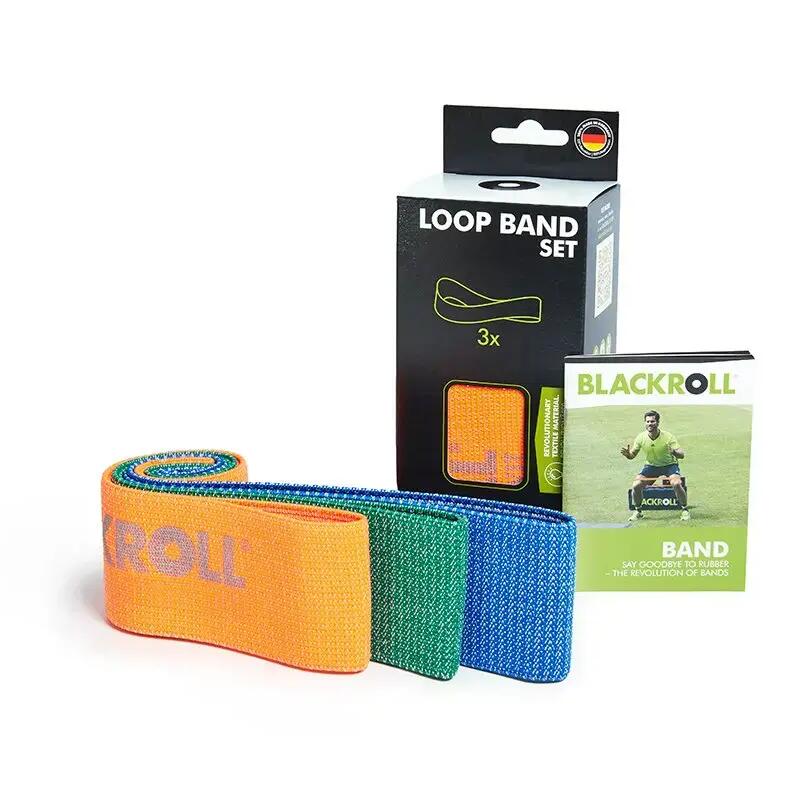 The **Blackroll Loop Bands Set for Allergy Sufferers** is meticulously crafted from patented textile materials ensuring exceptional training comfort for its users. This fitness band stands out as an ideal choice for individuals with rubber or latex allergies, thanks to the innovative weaving of rubber into the textile material itself, preventing any direct contact with the rubber. Not only does this feature make it a safe option for allergy sufferers, but it also highlights the sets delightful tactile feel combined with its durable, resilient, and hygienic material that can be conveniently washed at 60 °C. **Product Details:** Weight: 120 g each Includes an informational brochure **Resistance Levels:** 3-piece set: light (Orange), medium (Green), strong (Blue). 6-piece set: extra light (Yellow), light (Orange), moderate (Red), medium (Green), strong (Blue), and extra strong (Black) **Tensile Strengths at 100% Band Extension:** Yellow, Extra Light: 2.6 kg Orange, Light: 2.9 kg Red, Moderate: 4 kg Green, Medium: 4.9 kg Blue, Strong: 6.7 kg Black, Extra Strong: 7.2 kg This premium selection of loop bands is not only remarkable for its inclusivity by catering to those with sensitivity to common materials but also impresses with its blend of tactile comfort, durability, and hygienic properties. Whether for home workouts, rehabilitation, or strength training, this set provides a versatile range of resistance levels to meet various fitness needs. With the ability to sustain rigorous cleaning practices, it remains a top choice for maintaining a hygienic training . This exceptional set of Blackroll Loop Bands is perfect for anyone looking to add a versatile, allergy-friendly option to their fitness regimen. Its wide range of resistance levels and high-quality, washable materials make it an unbeatable choice for personal and professional use. Width: 6 cm Material: Textile, rubber Length: 32 cm