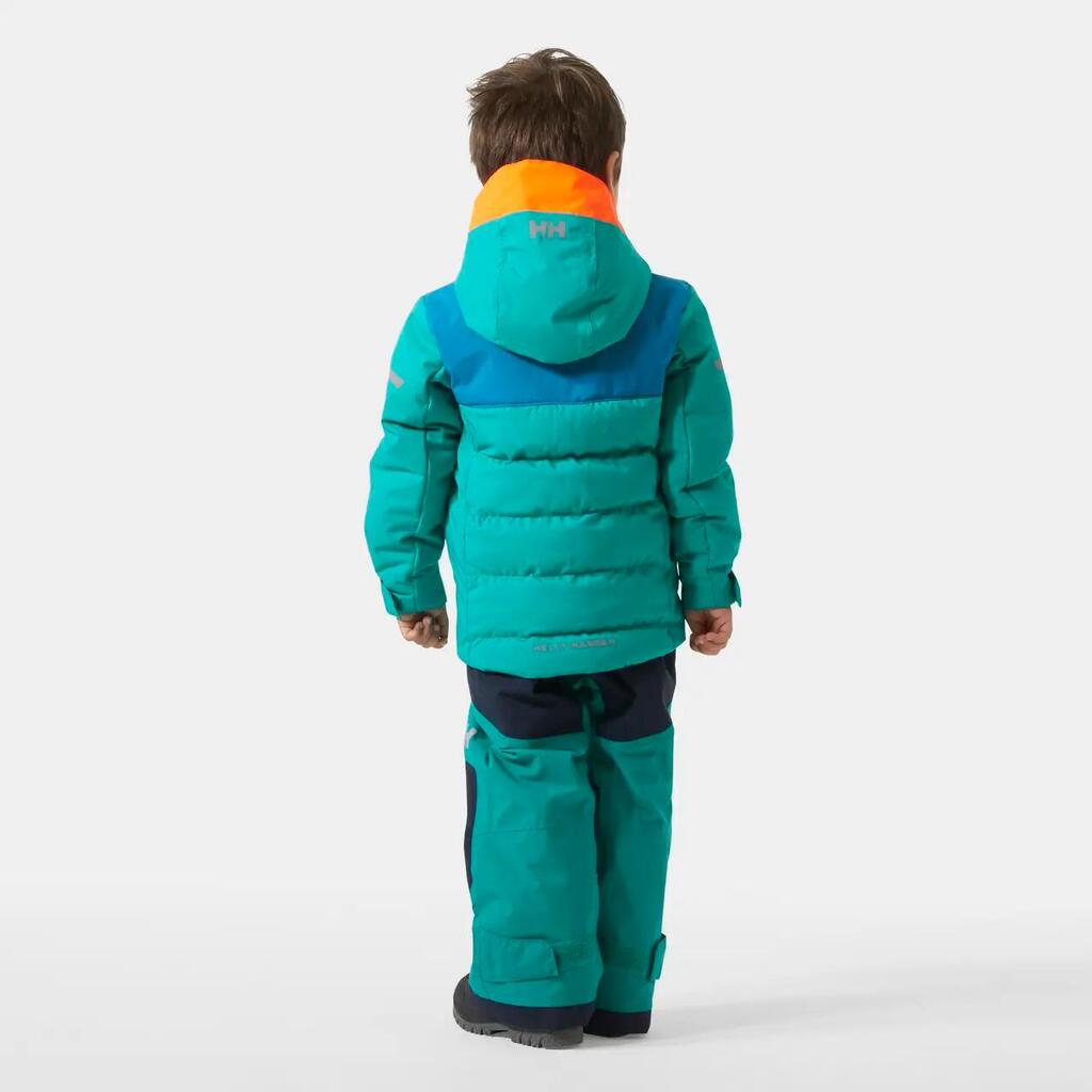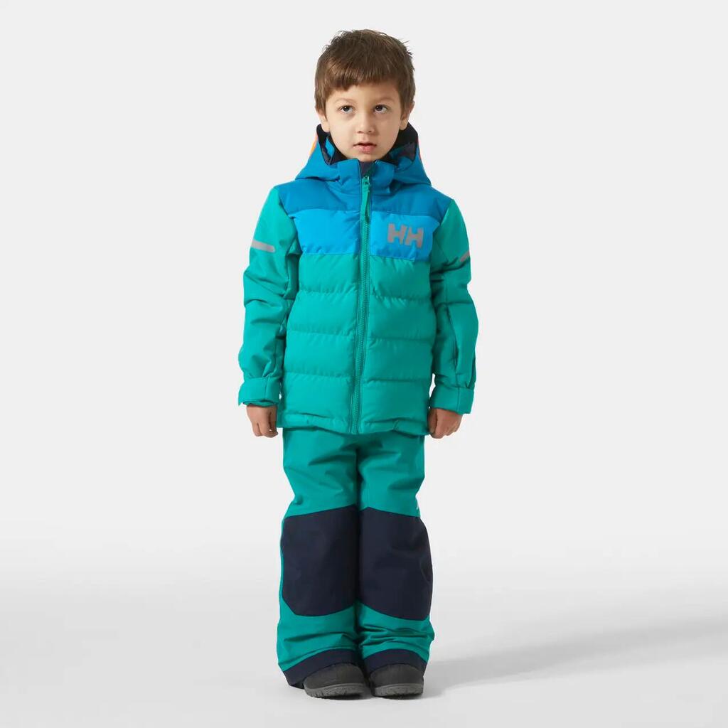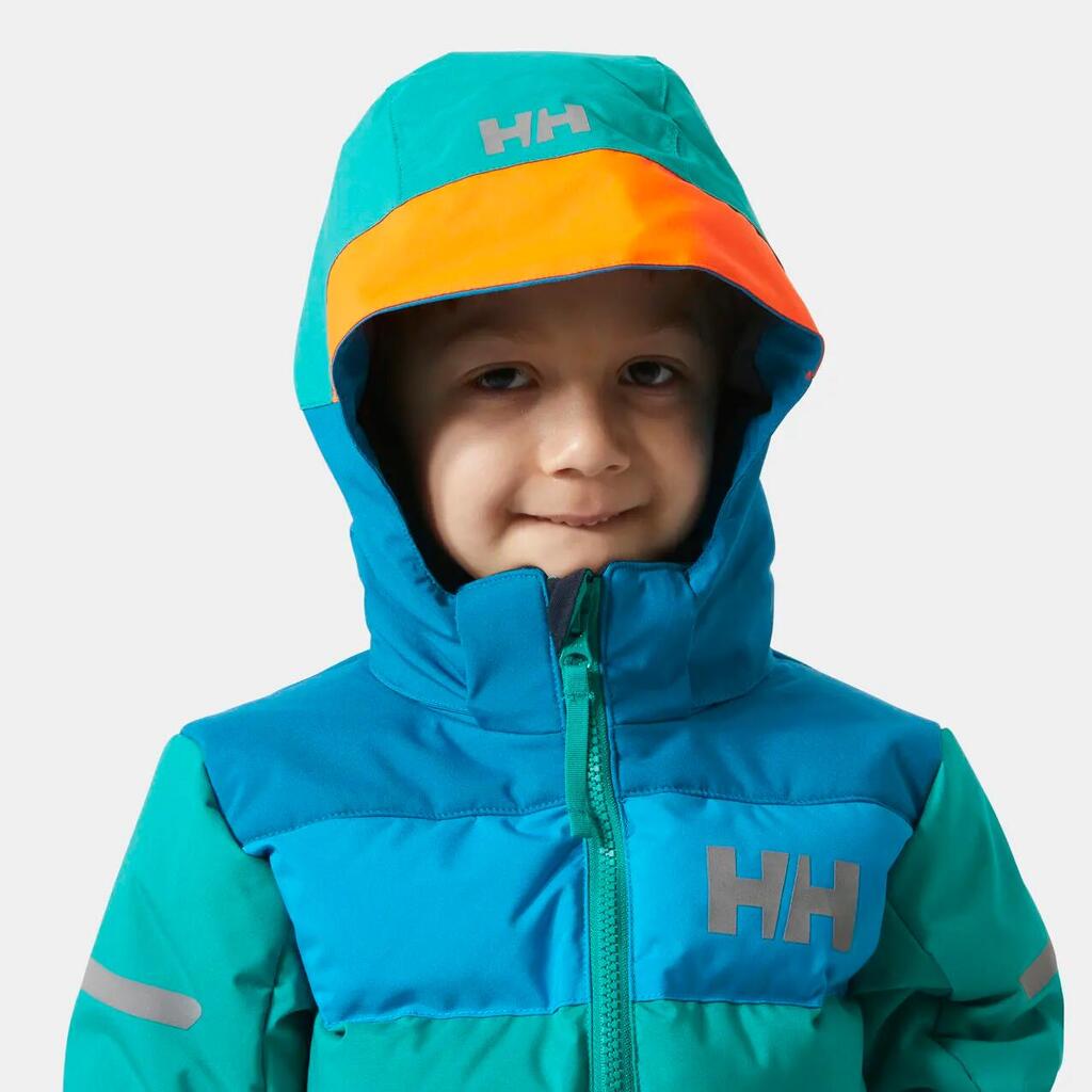 This insulated ski jacket keeps kids comfortable and protected during a fun day on the slopes. The outside of the jacket is water-resistant, and we've used 170g PrimaLoft® insulation in a cozy weave to keep the thermal warmth inside. Additional ski features include a neon yellow removable hood, a soft chin guard, a ski pass pocket, and a waterproof powder skirt to make your snow days even better.
