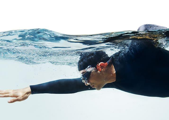 Listen to music while running with the Bluetooth headphones Shokz Openswim Pro, combining comfort and exceptional performance.