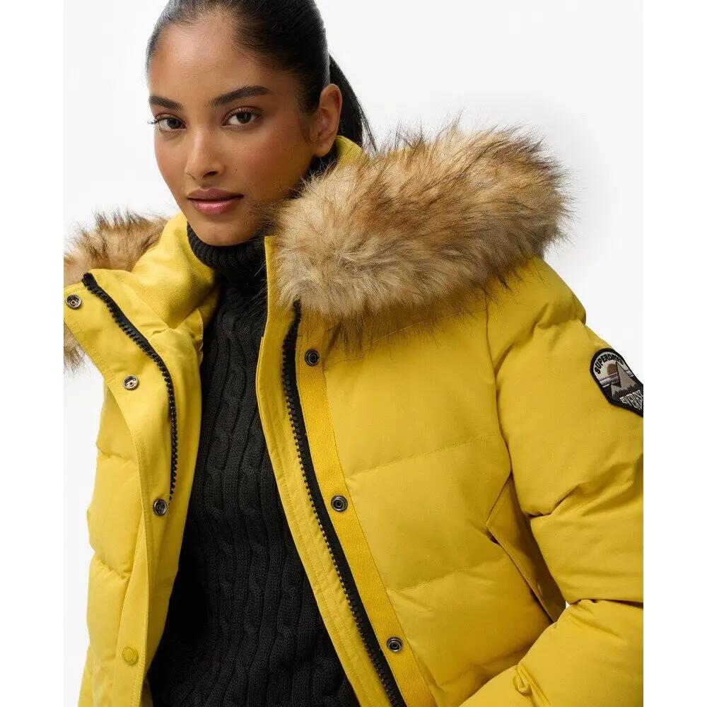 Face winter in style and comfort with the women's hooded puffer jacket Superdry Everest, a must-have piece!