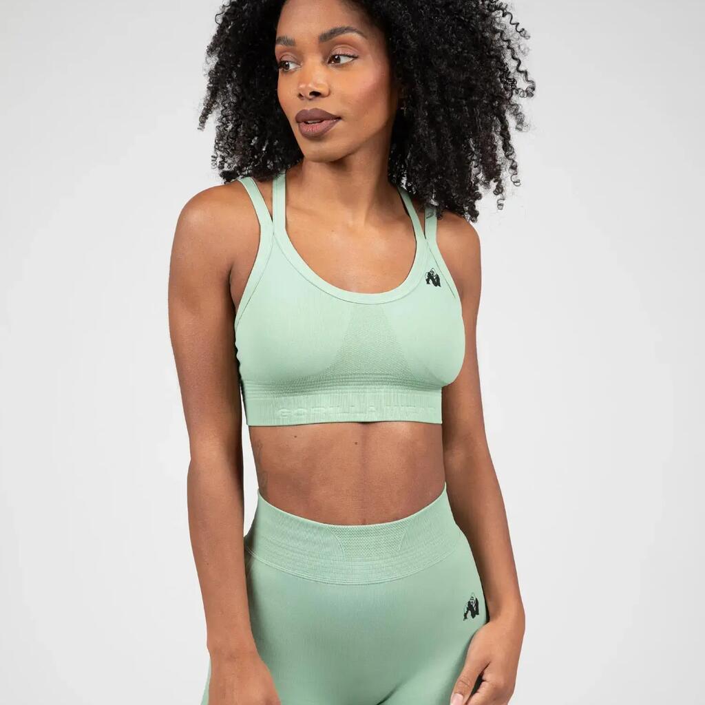 Discover the Gorilla Wear Whitney women's sports bra: feminine design, lightweight, and freedom of movement thanks to its stretchy and moisture-wicking material. Perfect for optimal training.