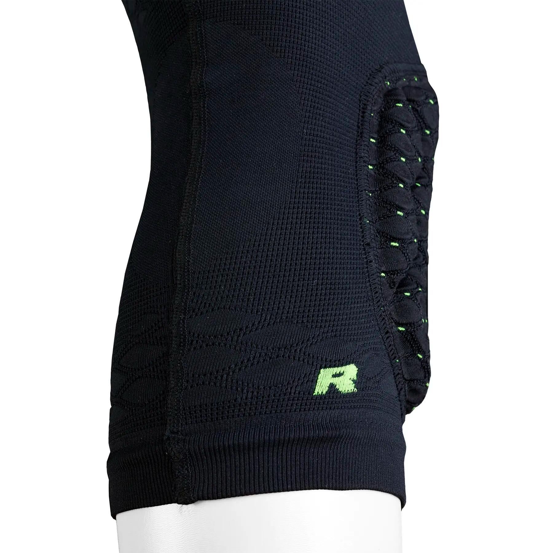 The internal technological framework is made up of polyurethane foams with compartments of different thicknesses, to position the protection perfectly around the knee, and a gel core that offers additional protection during falls.