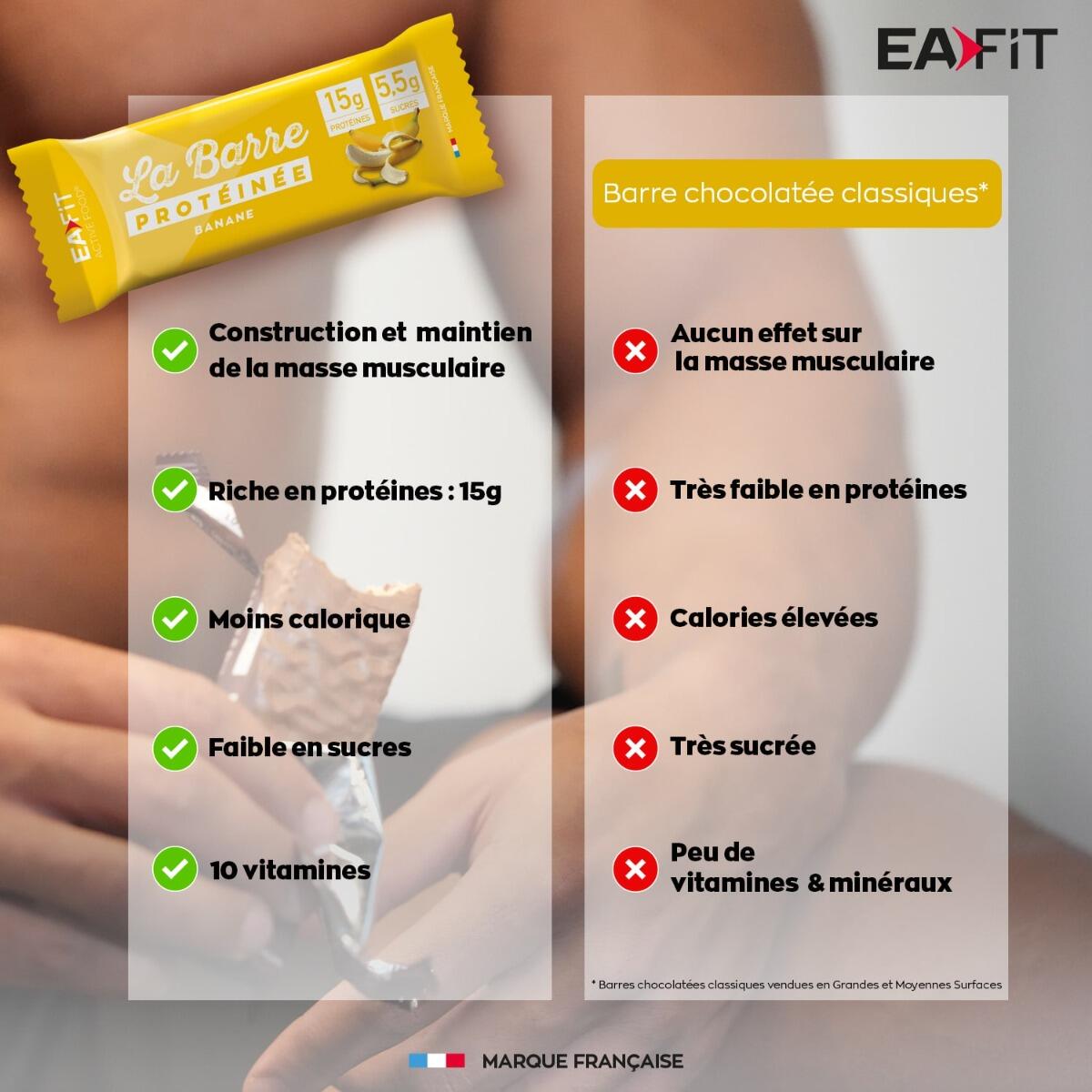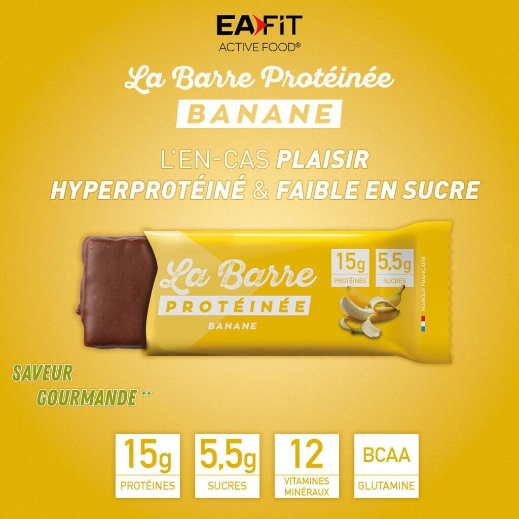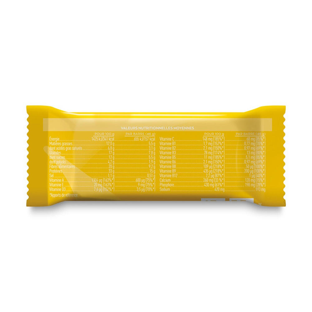 Milk protein concentrate, oligofructose syrup, milk chocolate coating (sugar, cocoa butter, skimmed milk powder, cocoa mass, whey protein (milk), anhydrous butter (milk), whole milk powder, emulsifier (soy lecithin), flavor and natural vanilla flavor), polydextrose syrup, humectant: sorbitol syrup, cocoa butter, dehydrated banana (2,3%), sunflower oil, minerals: sodium citrate - calcium phosphate - sodium phosphate ; L-cystine, flavor enhancer (potassium chloride), vitamins: C (L-ascorbic acid) - E (DL-alpha tocopheryl acetate, modified starch, maltodextrin, silicon dioxide [nano]) - B3 (nicotinamide) - B5 (calcium D-pantothenate) - A (retinyl acetate, corn starch, gelatin, sucrose, butylated hydroxytoluene, silicon dioxide [nano]) - D (cholecalciferol, corn starch, gelatin, sucrose, dl-alpha-tocopherol, silicon dioxide [nano]) - B6 (pyridoxine hydrochloride) - B2 (riboflavin) - B1 (thiamine hydrochloride) - B9 (pteroylmonoglutamic acid) - B8 (D-biotin) - B12 (cyanocobalamin), bulking agent: cellulose ; flavor.
