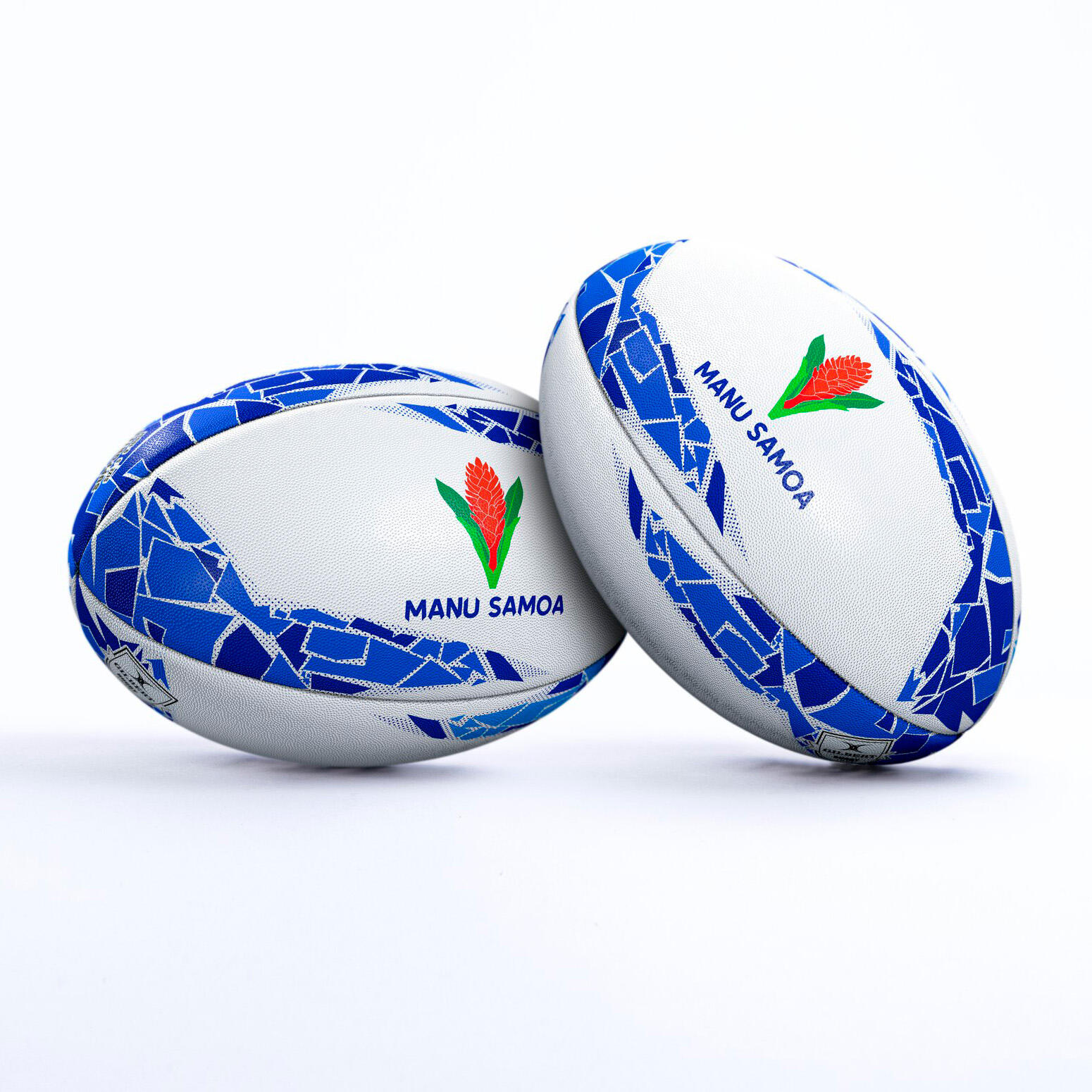 Featuring the iconic "Manu Samoa" inscription and the national flower, this supporter rugby ball provides authentic grip, durable construction and reliable performance for fans showing their pride.