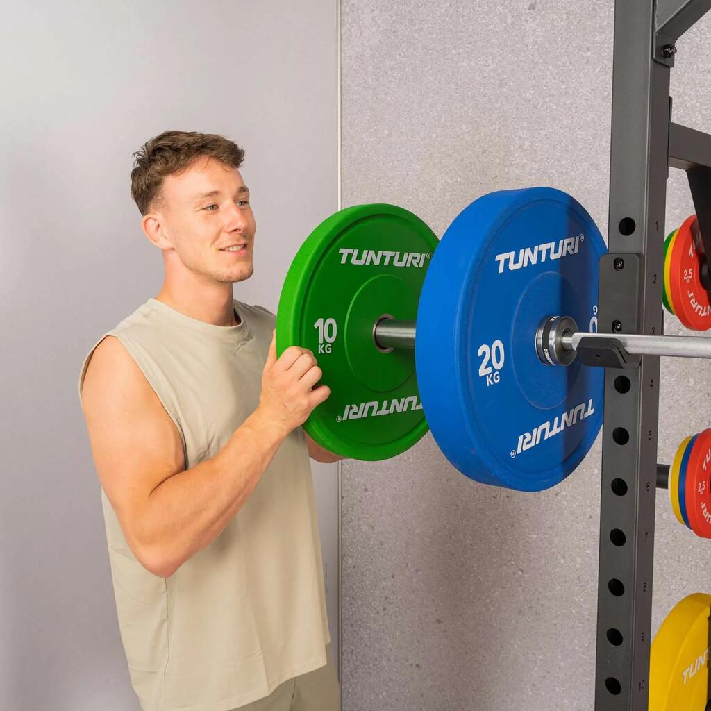 Rubber bumper plate for safe drops and quiet, floor-protecting training. Ideal for home and gyms: suitable for squats, deadlifts, and Olympic lifts.