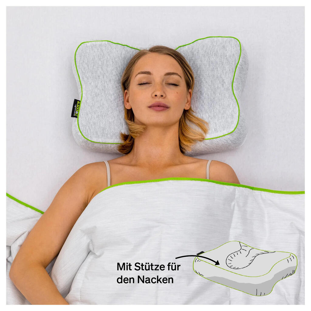 Experience immediate relaxation with the ergonomic Recovery Pillow that supports your sleep in every position and goes with you everywhere.