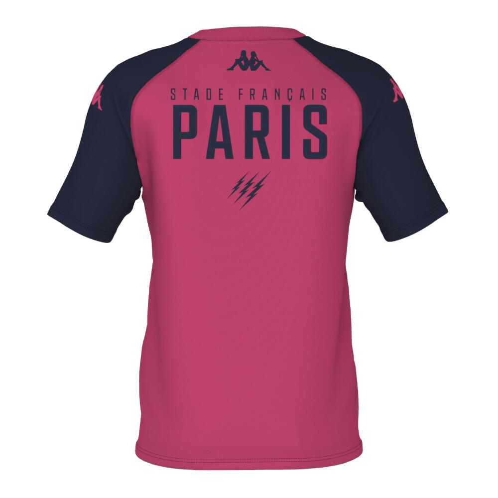 Stade Français Paris Kappa Telese training jersey: breathable, moisture-wicking fabric with ergonomic raglan sleeves for freedom of movement and durable performance in intense rugby sessions.
