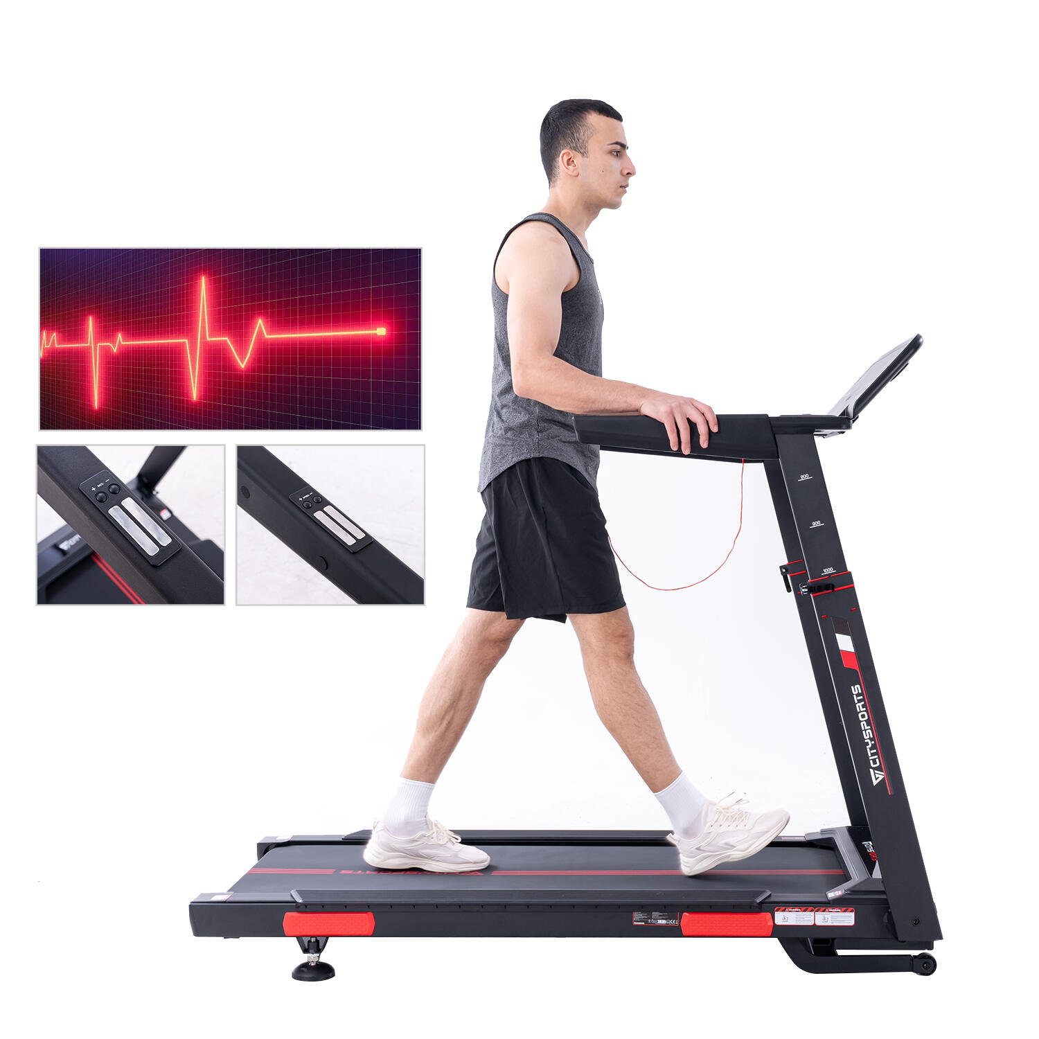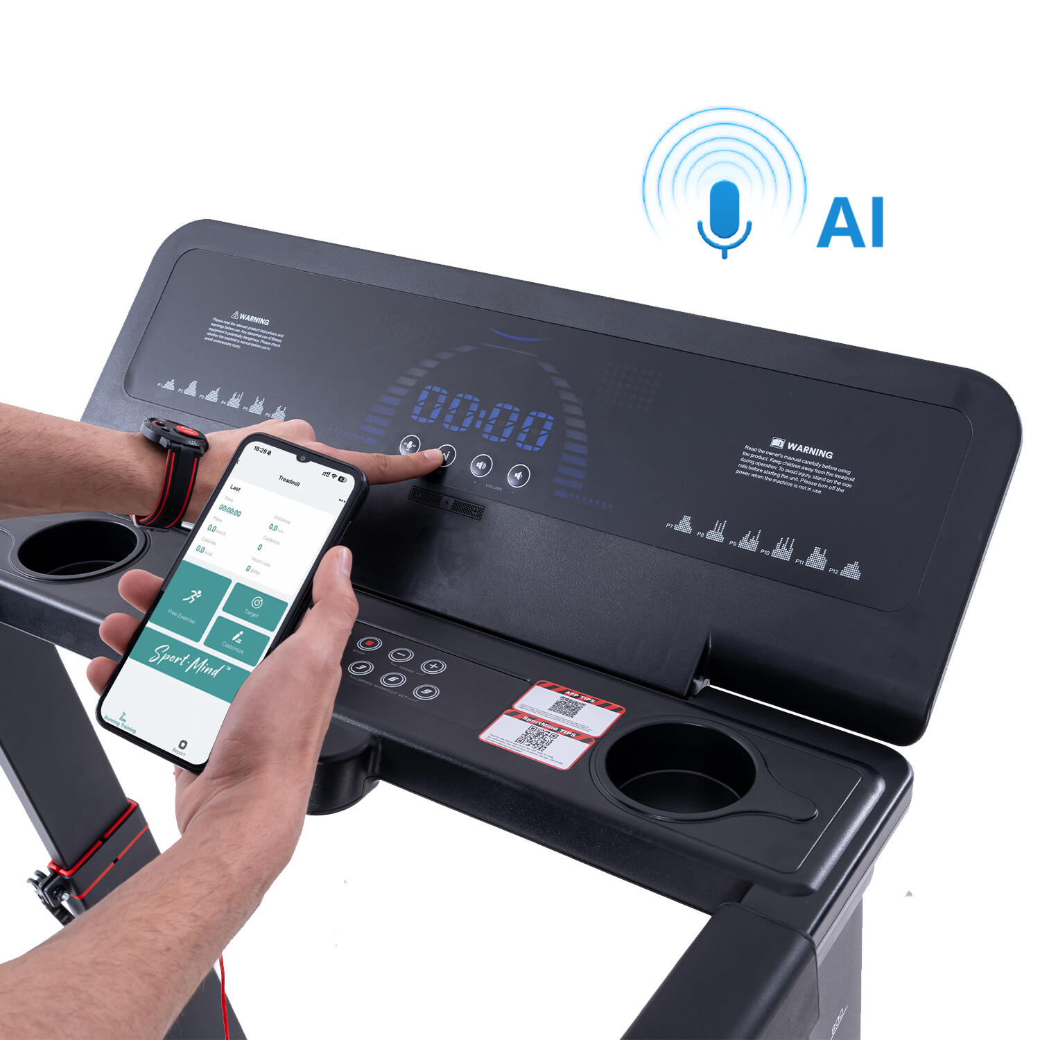 Foldable treadmill with AI control system and 15-level electric incline. 3700W motor, speed 1-16.5 km/h. Adjustable armrests and screen. Max load 200kg.