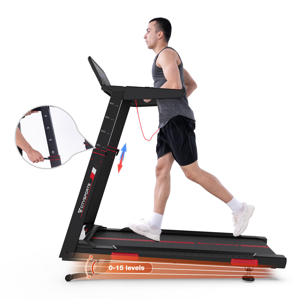 Treadmill CITYSPORTS Black Incline 16.5km/h Foldable APP- AI system