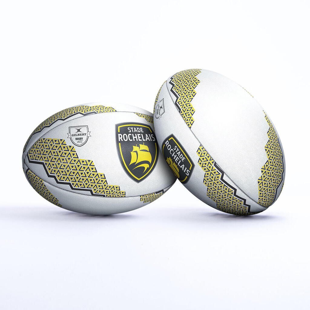 A durable rugby ball with superior grip for training and casual games, designed to showcase support for Stade Rochelais while delivering reliable performance and comfortable handling.