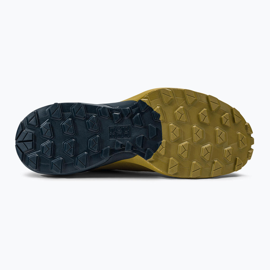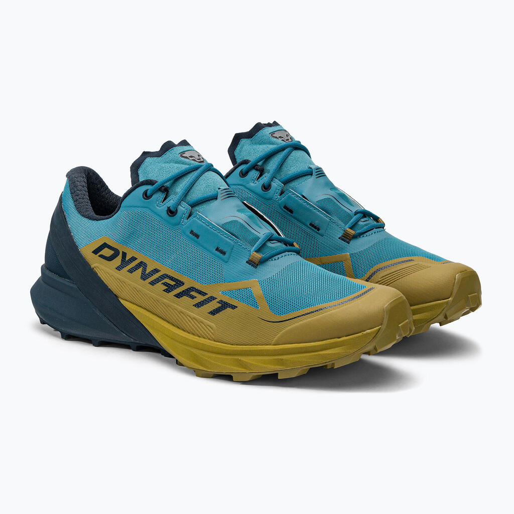 The Ultra 50 men's running shoe is designed for long trails in demanding alpine terrains, where protection and safety are of utmost importance. This trail shoe offers remarkable cushioning and a comfortable fit, two key qualities for distances of 40 km and over. With an 8 mm drop, its Alpine Rocker outsole, and generous cushioning, the Ultra 50 has a dynamic character even in the toughest terrains. The 3D-Mesh construction and seamless tongue ensure a stable yet comfortable fit without pressure points. The generous shape and volume are also suited for ultra distances. The POMOCA outsole of the Ultra 50 features an open and aggressive tread profile, providing excellent grip and responsiveness on both dry ground and challenging conditions. Ballistic Bumper reinforcements in the toe region and a TPU film applied to sensitive areas protect the feet from impacts on rocky terrain. The classic lacing allows for an individual and precise adjustment, in line with the shape of each foot. The Invisible Lacing system includes a flap that protects the laces during the run. Additionally, the DYNAFIT Heel Preloader provides added heel support that has proven effective multiple times. Ultra 50 – your shoe for long and demanding trails.