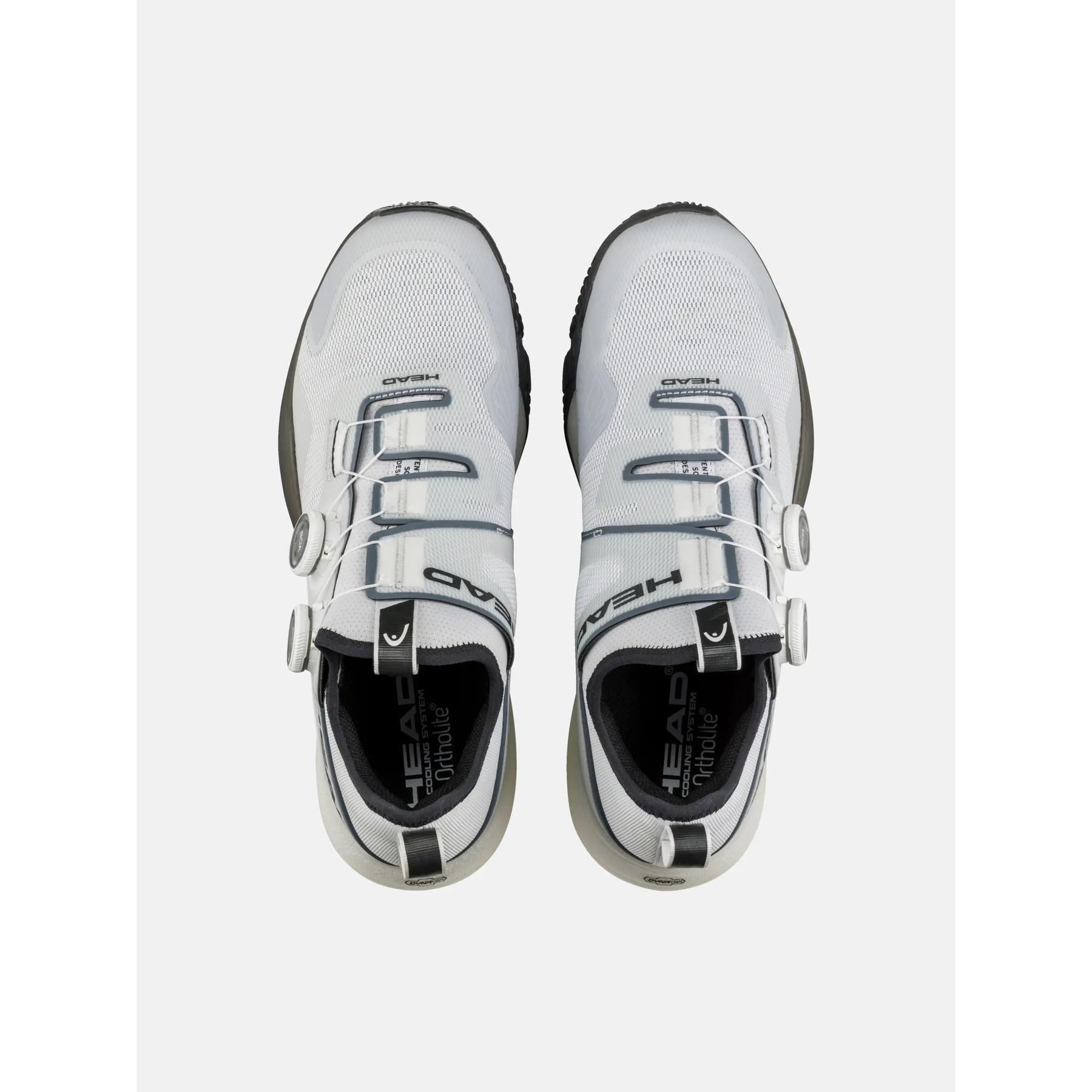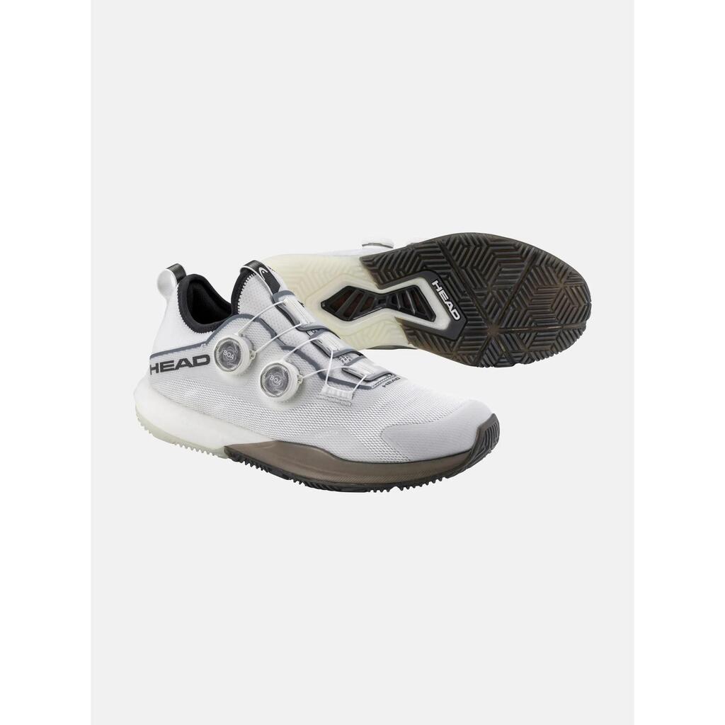 Discover a new level of comfort with the MOTION PRO BOA PADEL, which is the first padel shoe featuring the Dual BOA® Fit System that offers micro-adjustable precision fitting. Developed with professional padel players from HEAD, this shoe provides 360-degree movement and high performance thanks to exceptional comfort, stability, and breathability. An innovative outsole pattern - tested in collaboration with the official grass supplier Premier Padel, MONDO - enhances grip in all directions. For outstanding comfort, the MOTION PRO BOA PADEL features a fully elastic sock and an OrthoLite insole, while the midsole contains DynaFoam, created with small air cells, making it lightweight and highly responsive. Stability comes from the combination of a TPU upper in the midfoot, a reinforced upper, and Lateral Control+ technology. To help keep the foot cool, there is a breathable mesh and a ventilation system in the midfoot, while the bold design, featuring a large HEAD logo, adds to the shoe's modern appeal.