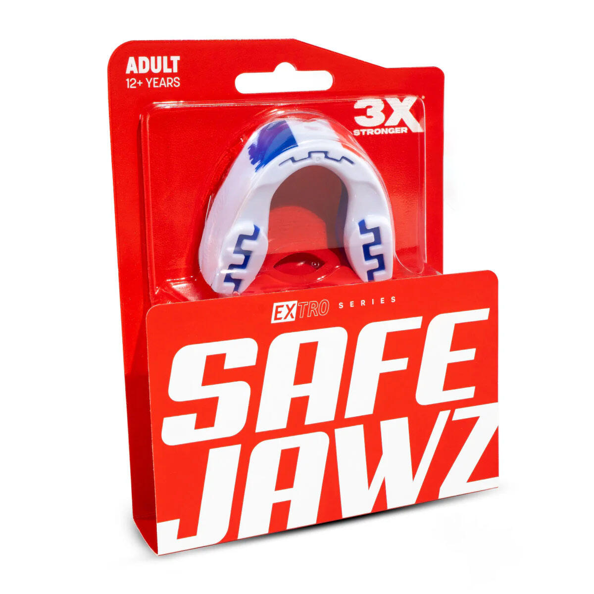 This SafeJawz rugby mouthguard offers effective oral protection with its shock-absorbing dual layer, while ensuring optimal comfort and reliable support throughout intense matches and training.
