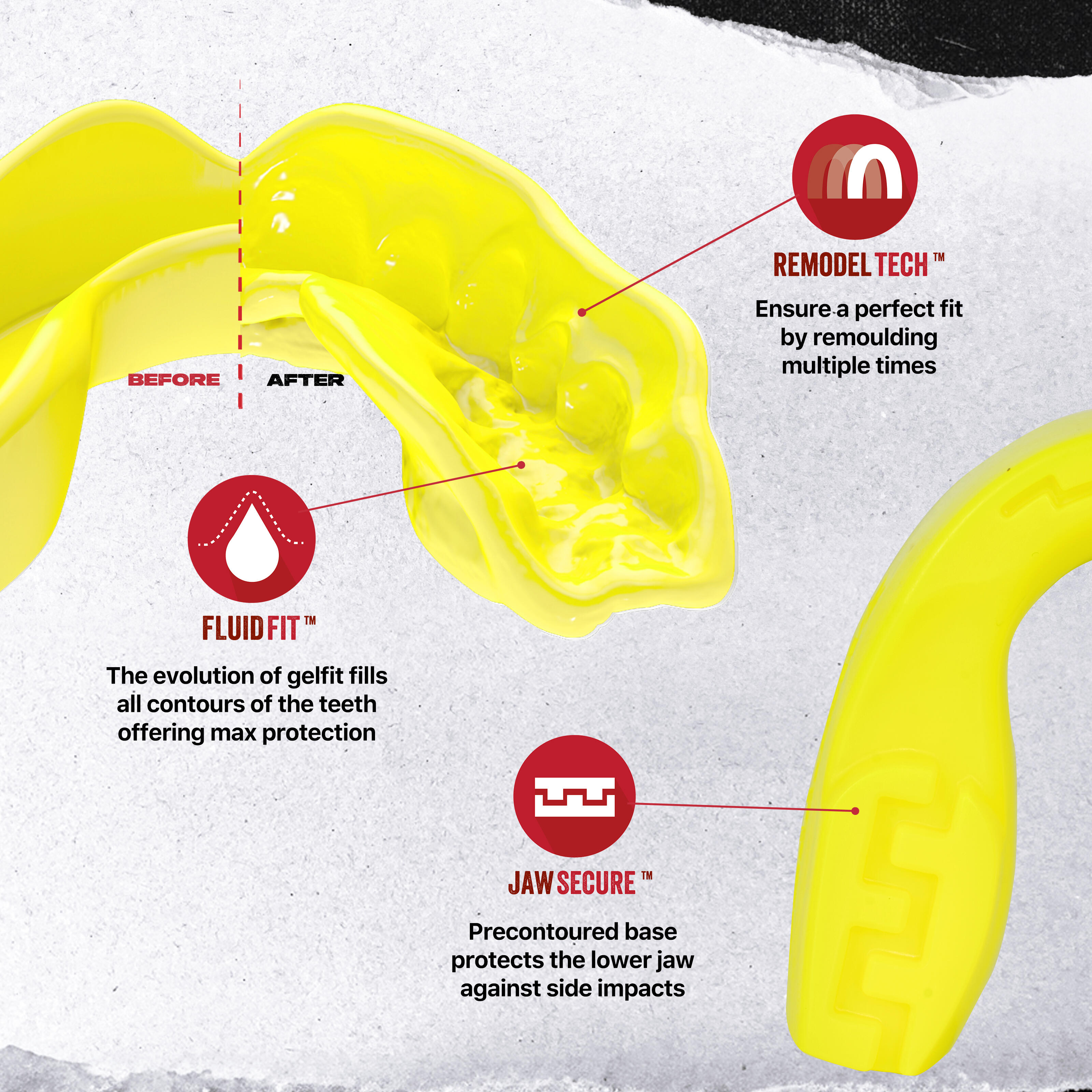 Next-generation junior mouthguard with precise fit and advanced molding technologies. Delivers maximum protection and outstanding comfort for young athletes, ideal for all contact sports.