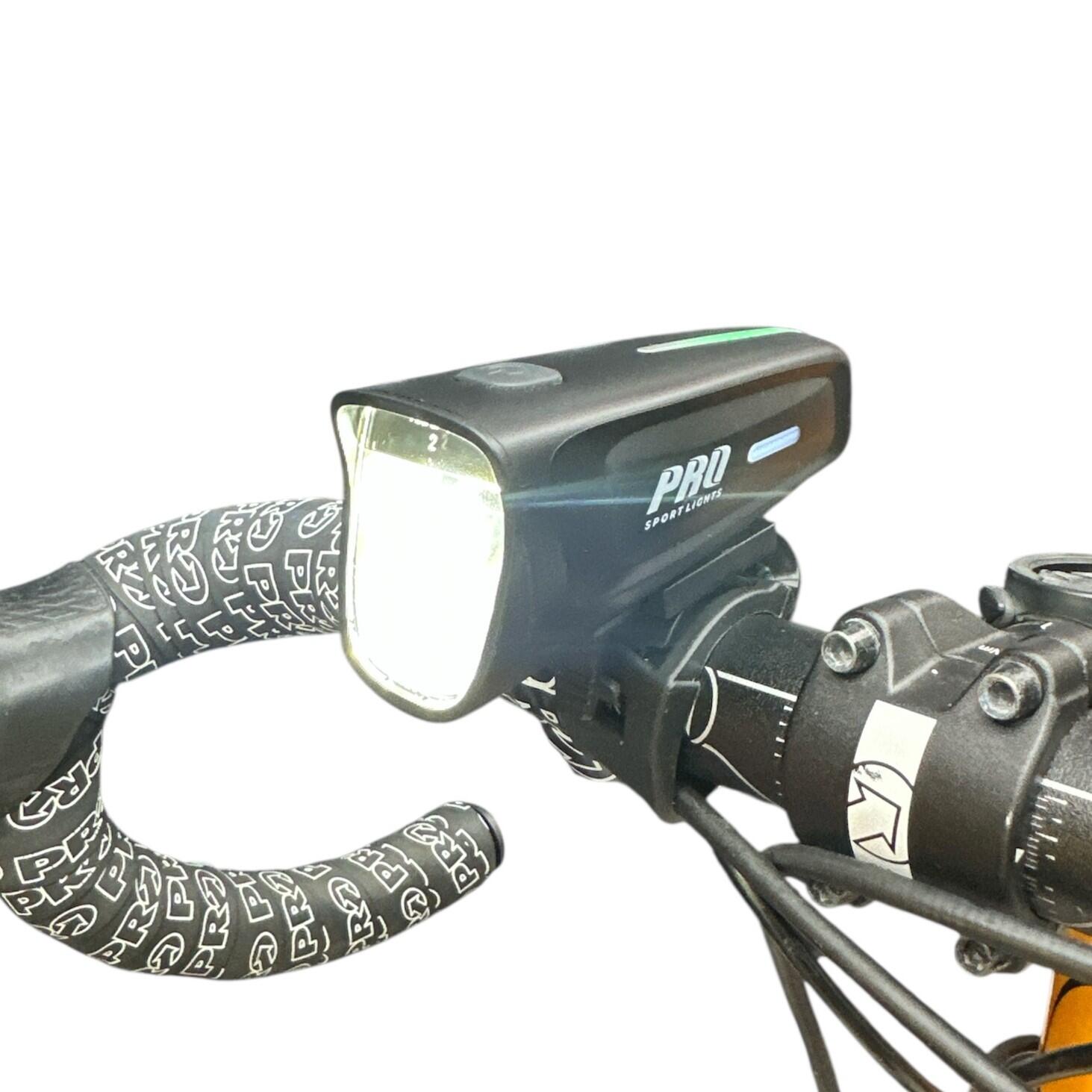 The **headlight** is equipped with a premium **2000 mAh li-ion battery**, offers three lighting modes and has German **StVZO certification**.