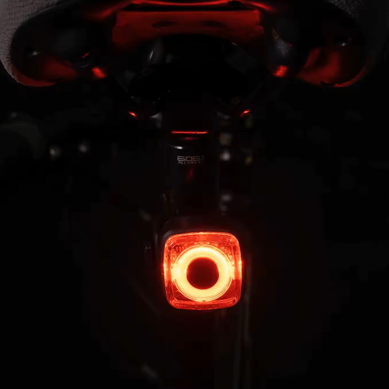 The **rear light** runs on an efficient **200 mAh li-ion battery** and, with its bright LEDs, ensures maximum **visibility for up to 4 hours**.