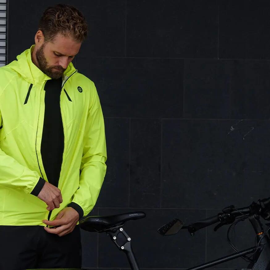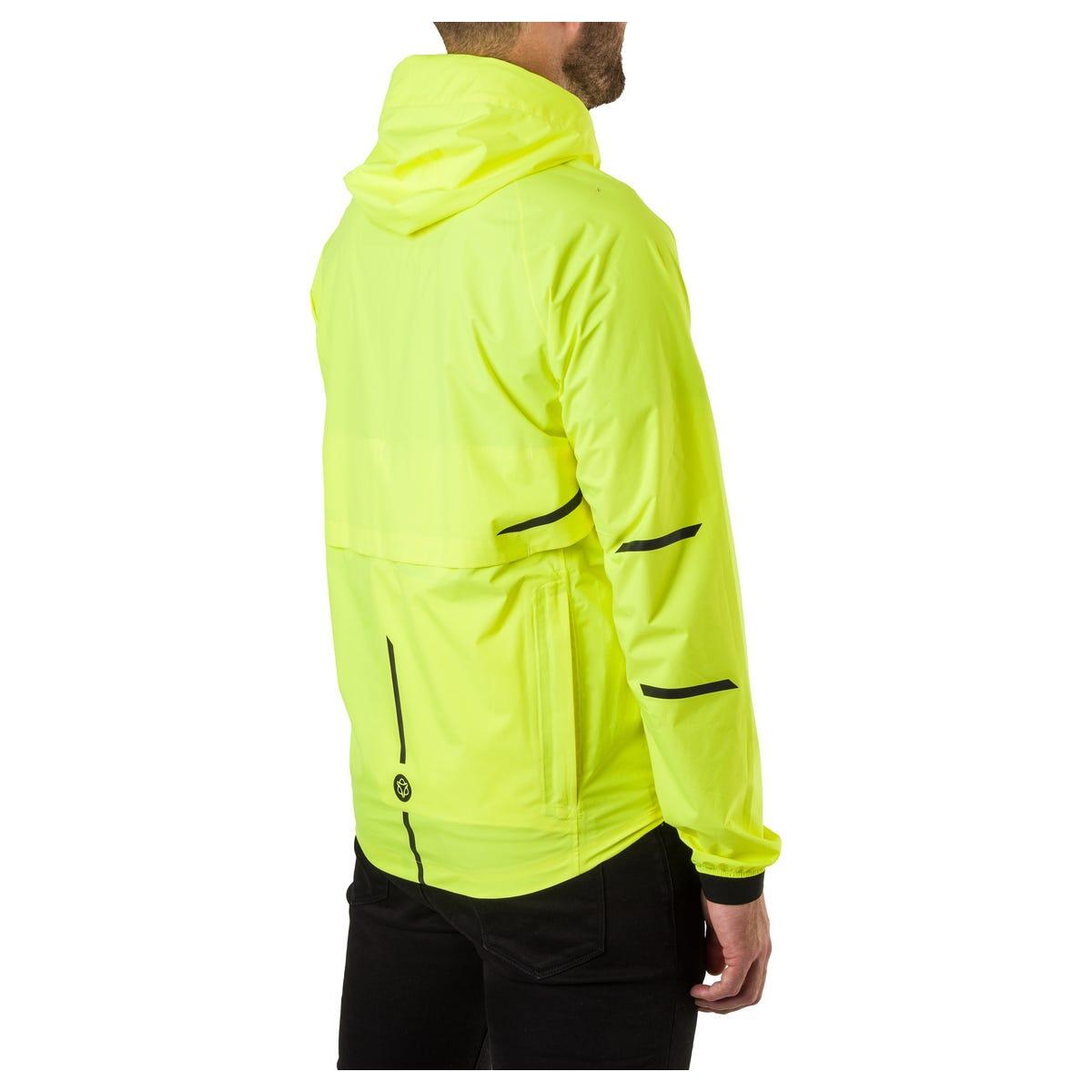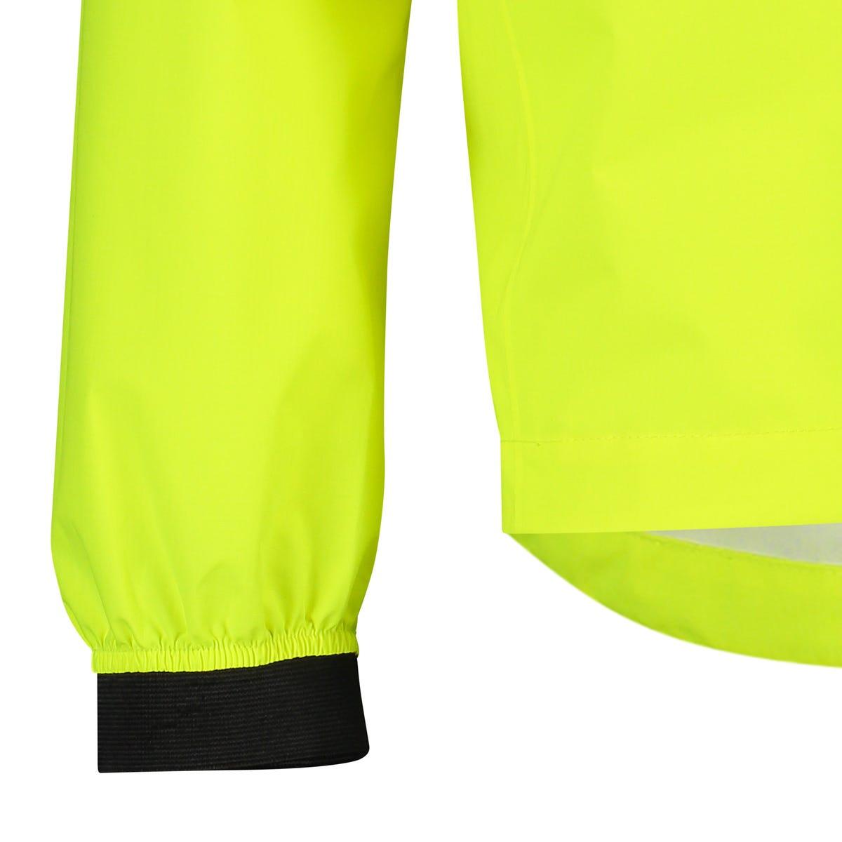 Material: 100% recycled Polyester ripstop, 2.5-layer, lightweight. Windproof, waterproof & breathable: Poray 10.000. EN 20471 Hi-vis Neon yellow fabric & reflective details.