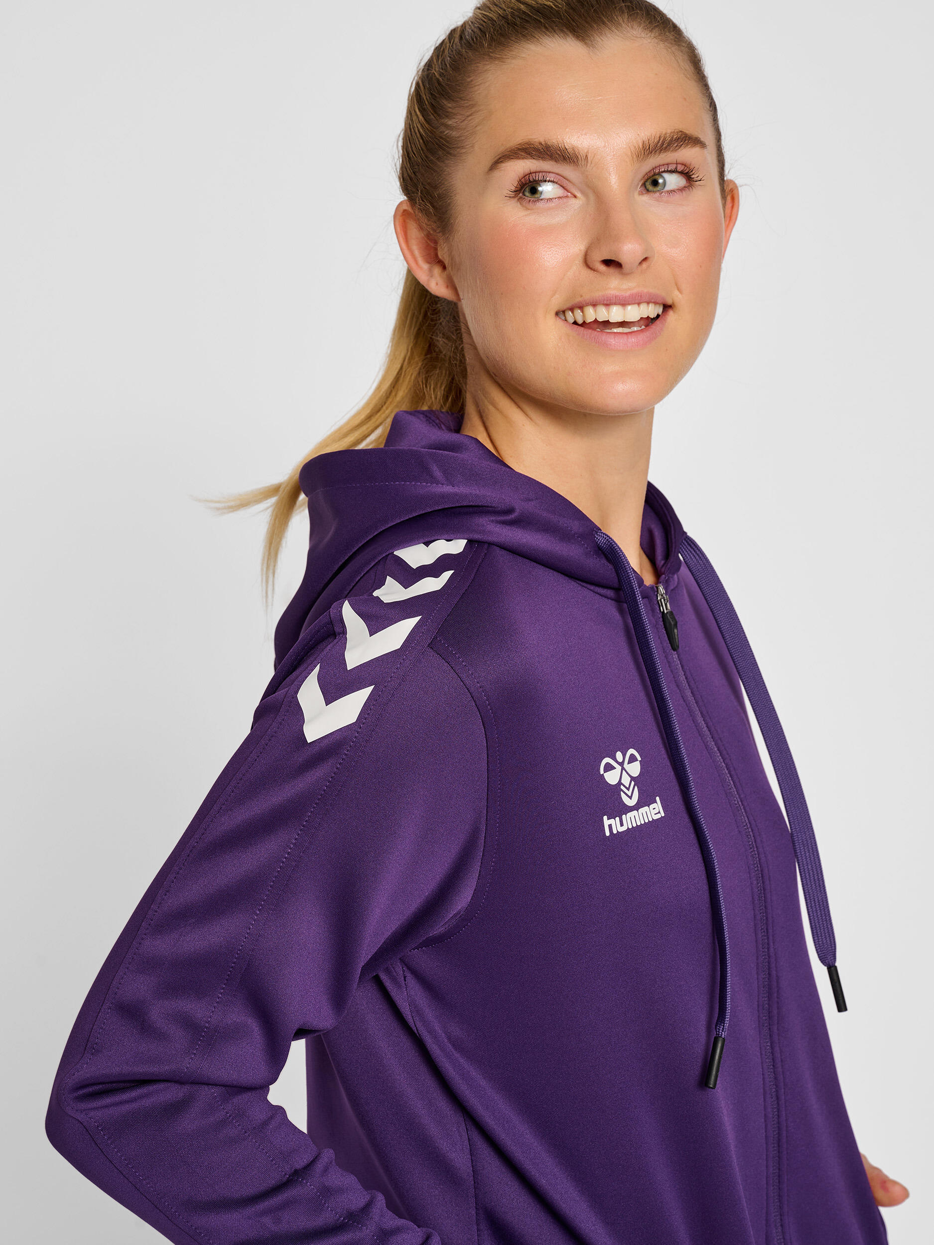 Comfort and style in one with our Hummel hmlCore women's hooded sweatshirt. Stay stylish with our logo and chevron prints, drawcord and zipper.