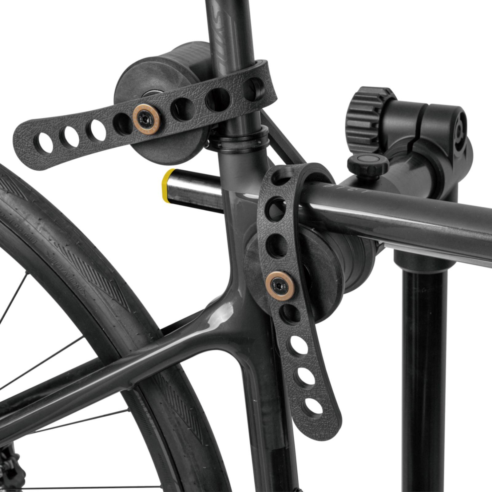 Unique workshop stand design with 3 adjustable anchor points ensures stability and prevents damage to thin-walled or aerodynamically shaped tubes